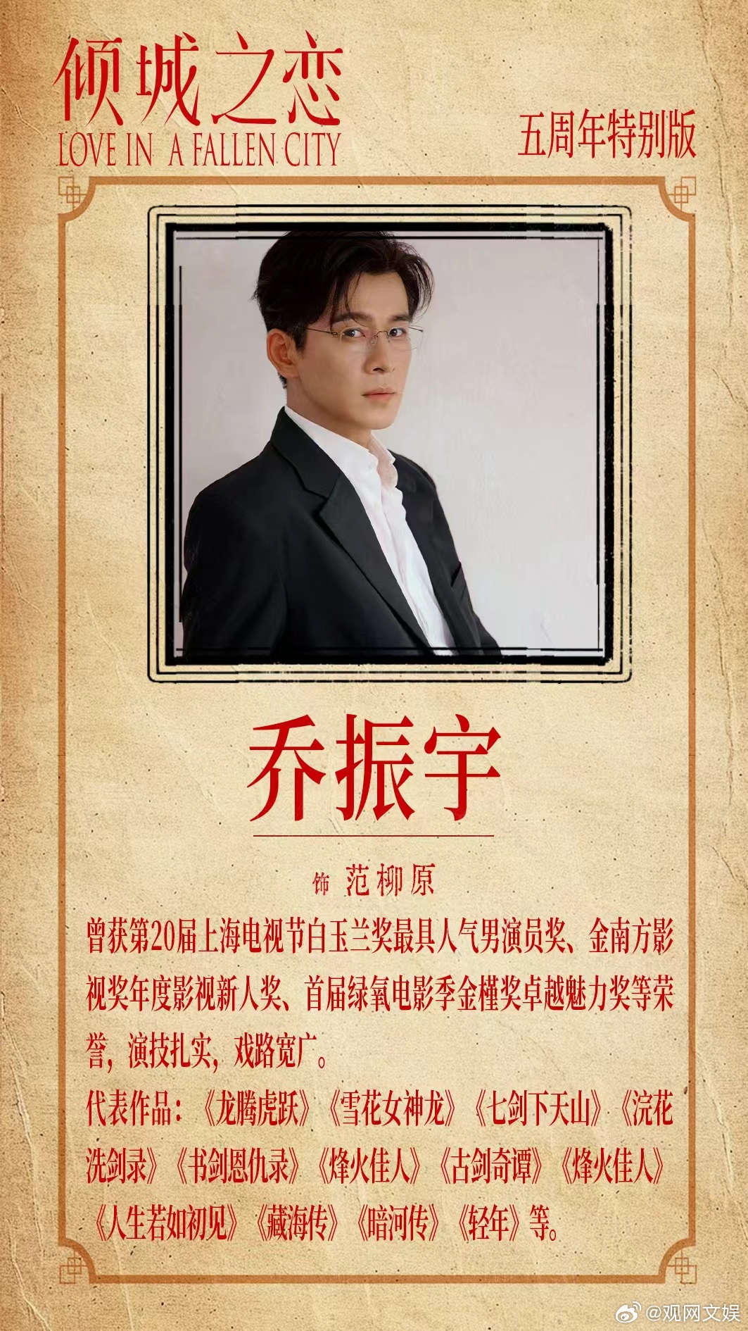 话剧倾城之恋官宣乔振宇朱洁静乔振宇话剧倾城之恋改编自张爱玲同名小说话剧《倾城之恋》五周年特别版今日官宣话剧倾城之恋五周年特别版由朱洁静饰演女主角“白流苏”,乔振宇饰演男主角“范柳原”,苏州站、武汉站现已开票。