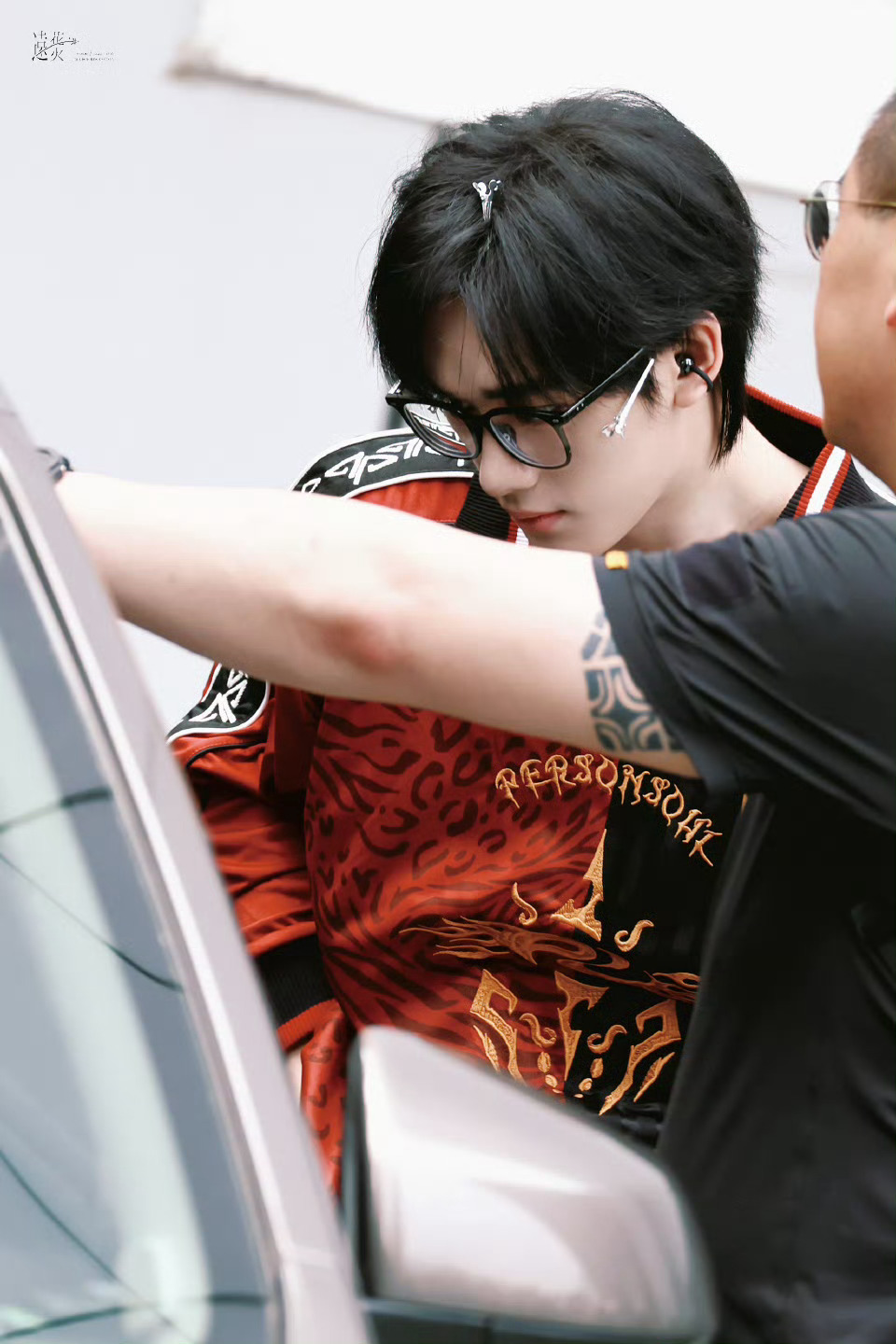 丁程鑫 美高学长丁程鑫红黑上衣搭配牛仔裤➕👓,今天是美高学长!🙋♂️你好星期六
