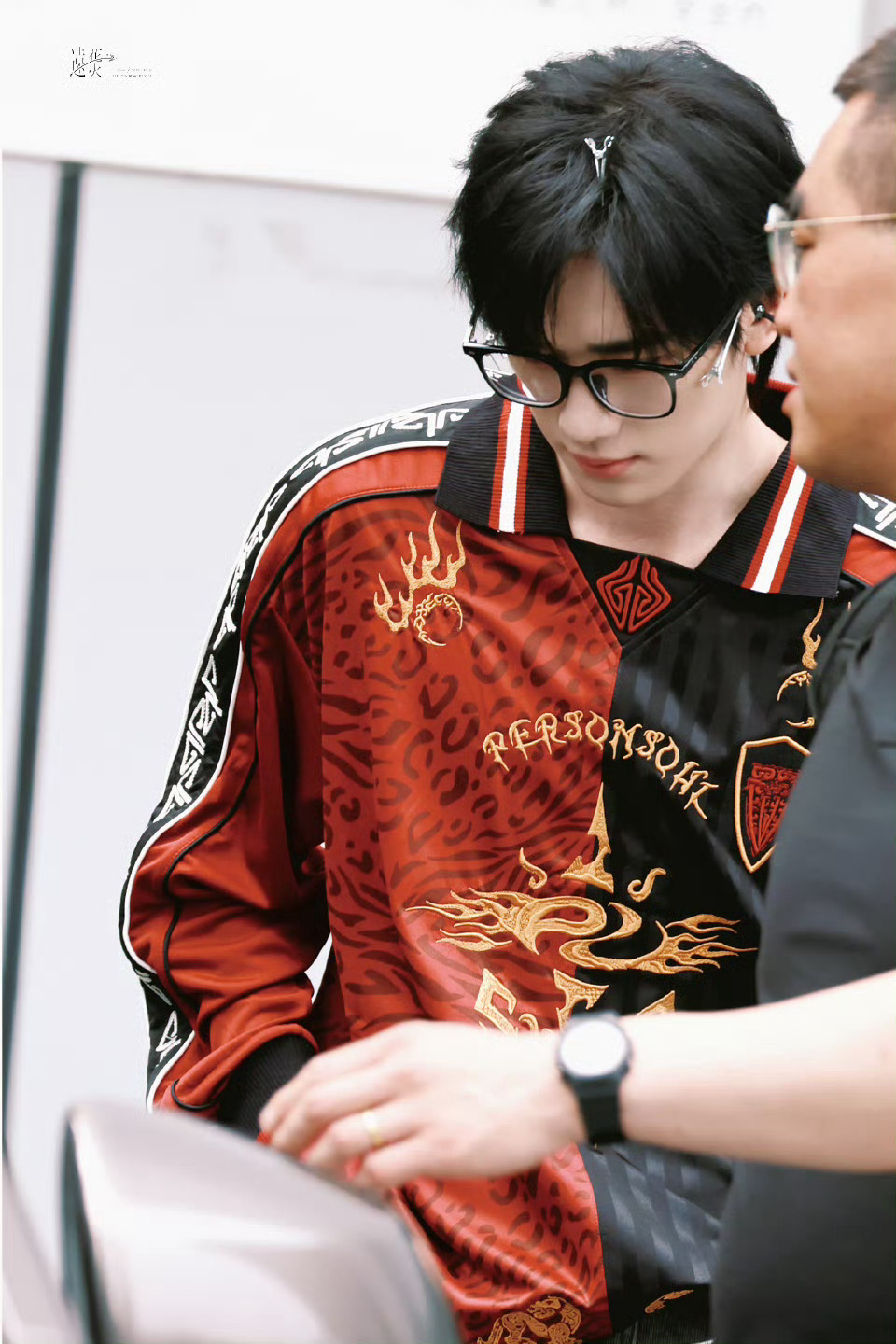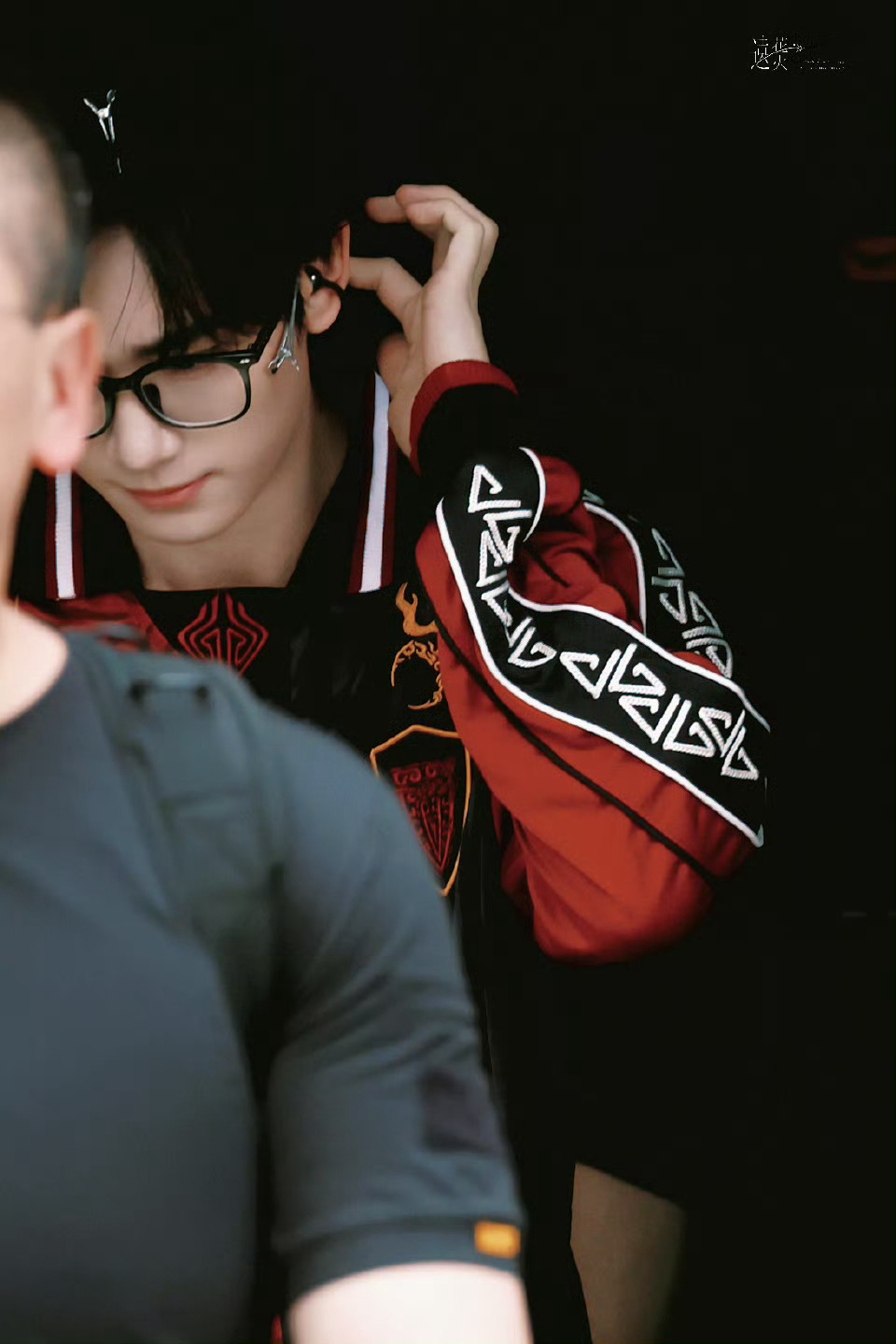 丁程鑫 美高学长丁程鑫红黑上衣搭配牛仔裤➕👓,今天是美高学长!🙋♂️你好星期