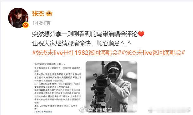 张杰分享网友鸟巢演唱会观后感张杰分享网友评论,鸟巢演唱会的磁场真的太正了,看完浑