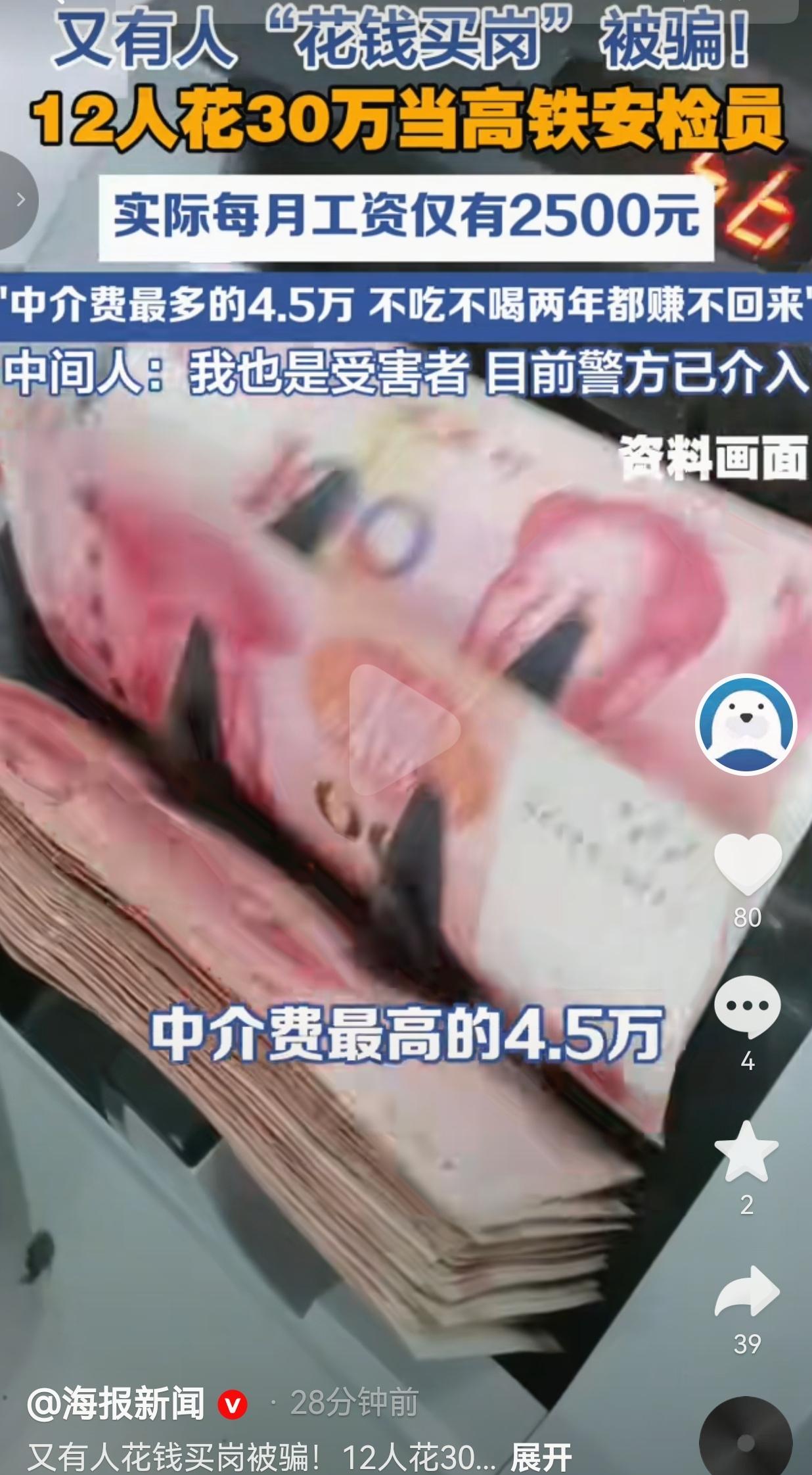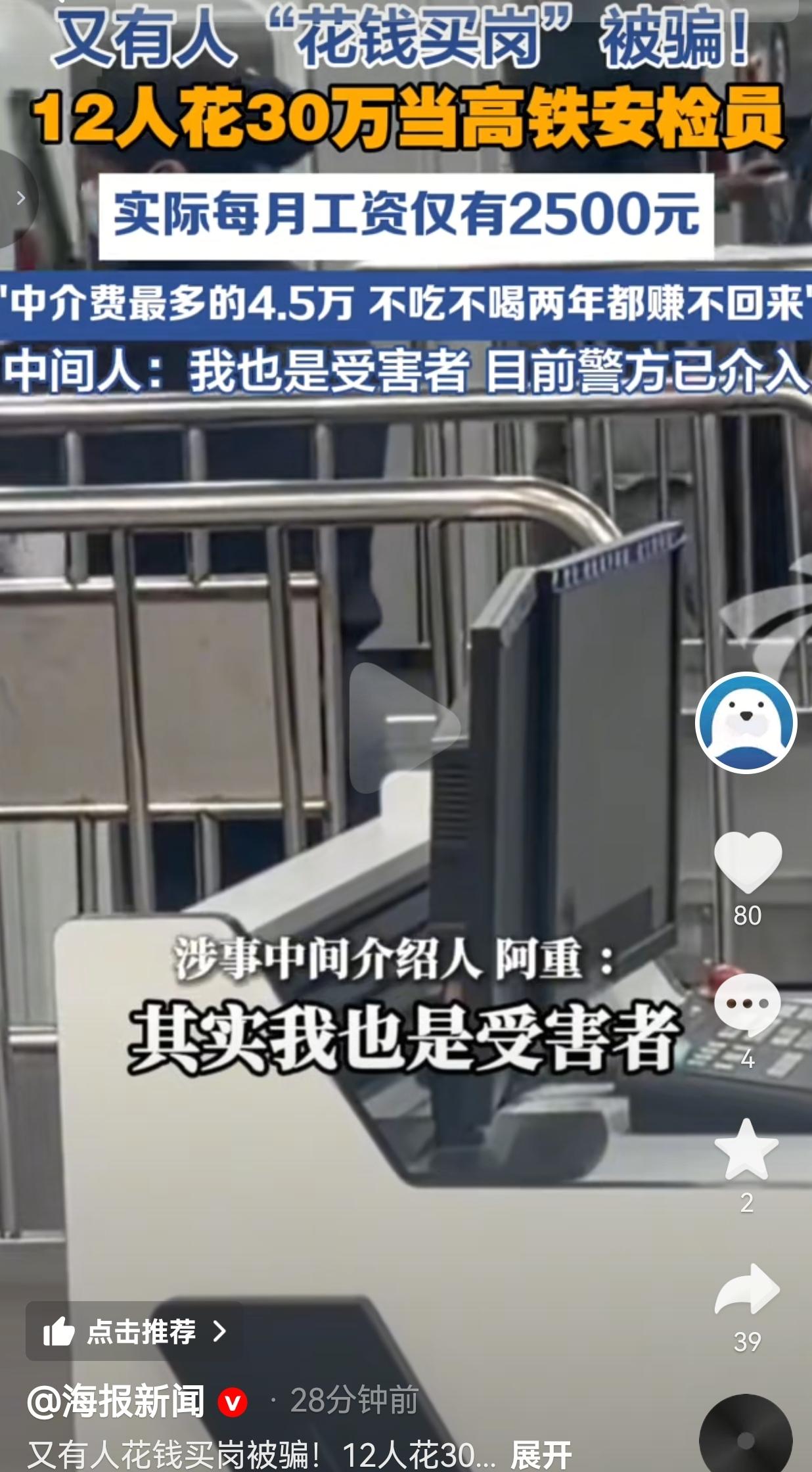 更有网友表示:我当年也差点被骗!中介说花钱能进地铁,还好我多留了个心眼,去官方渠道一查,人家招聘全是公开的,根本没有花钱买岗这一说!