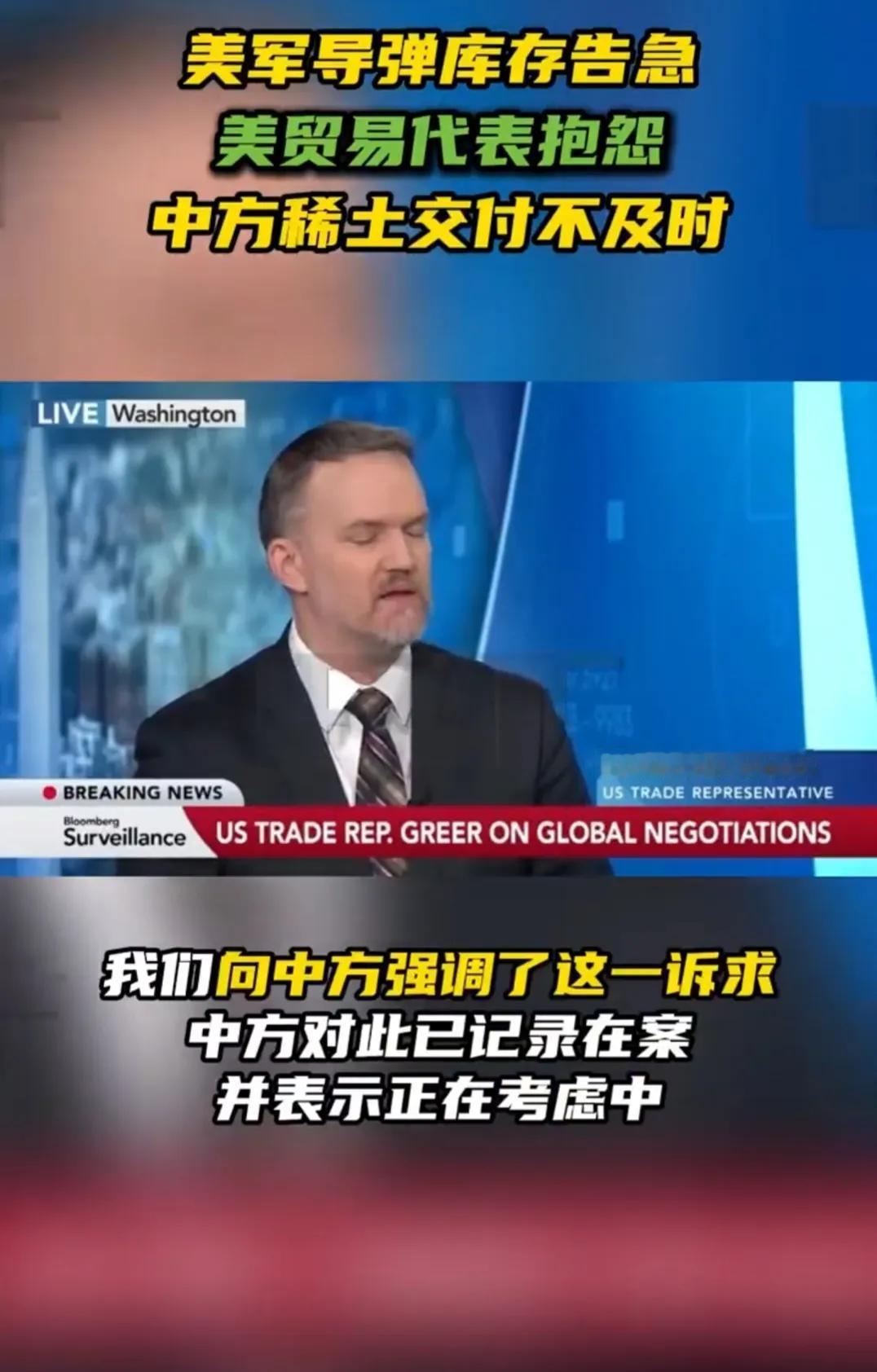 美国贸易代表格里尔近日称,美方在3月中旬的巴黎会谈期间向中方抱怨,中方出口的稀土“交付不够及时”,使美国的导弹生产受到影响。