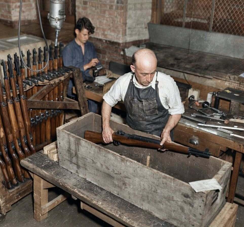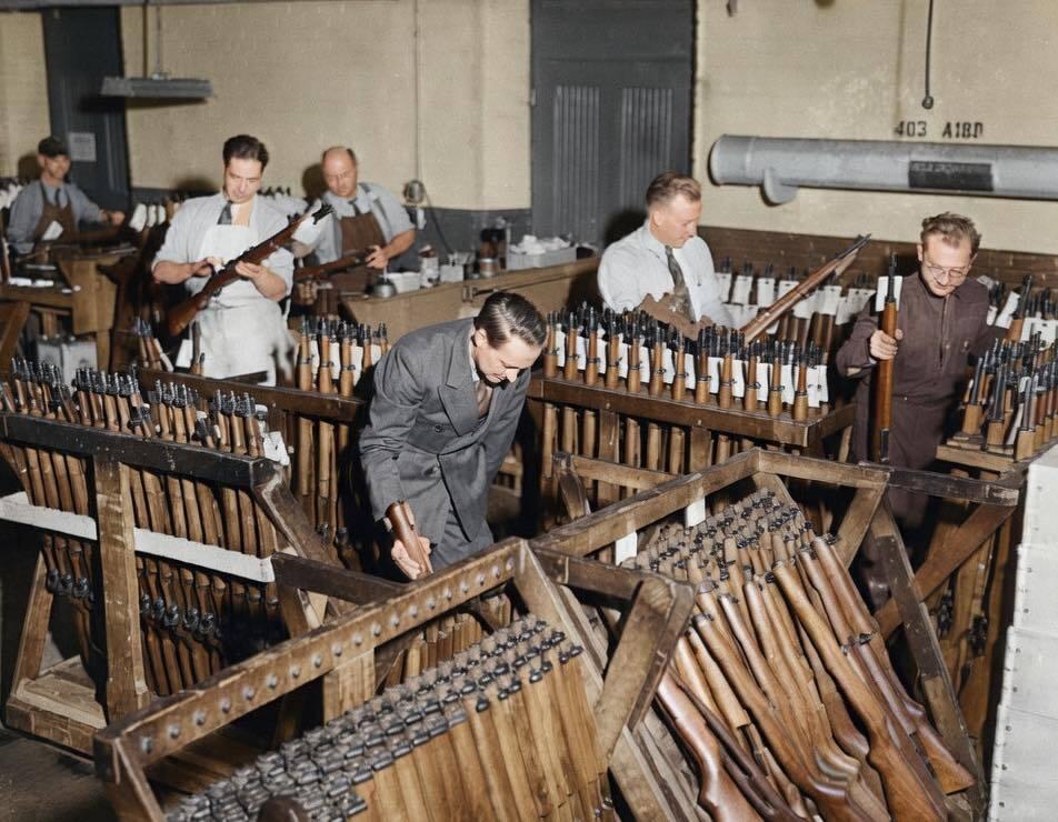 该枪最初由斯普林菲尔德兵工厂生产,后由温彻斯特兵工厂接手,战争期间共生产约540万支,总产量超过600万支。M1步枪因其可靠性和高效性而备受赞誉,巴顿将军称其为“有史以来最伟大的战斗武器”。