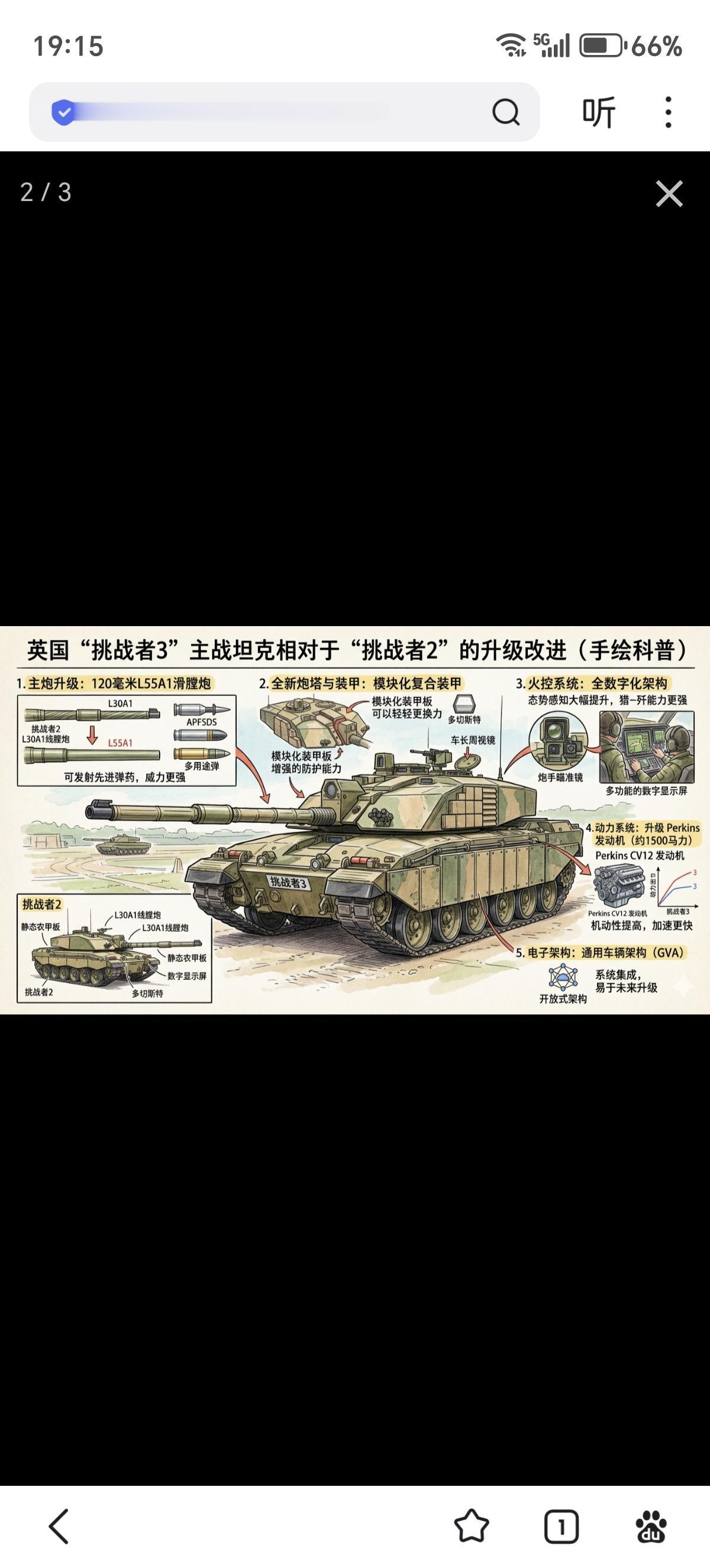 “挑战者3”并非全新设计的底盘,而是基于“挑战者2”底盘进行深度数字化和武装升级的“第四代”主战坦克,可以说“挑战者3”是用老底盘涅槃而生的数字重骑兵。2026年1月,该坦克刚完成了首次载人实弹射击测试。