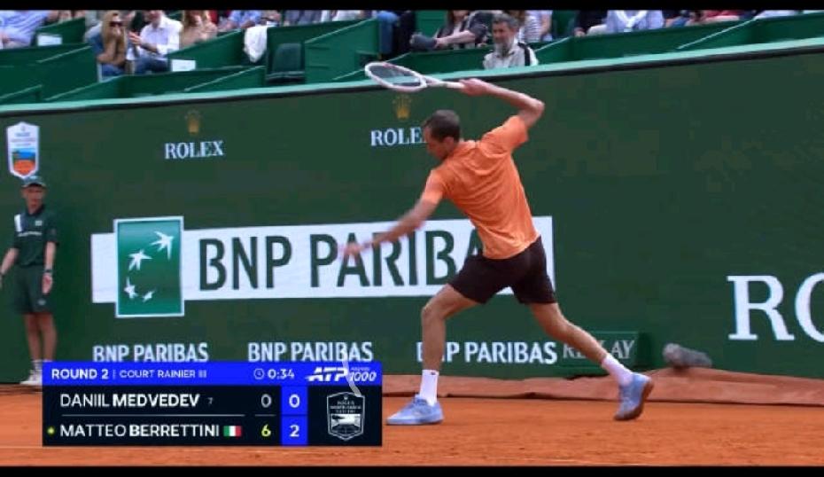 今天网坛大新闻肯定是梅德韦杰夫红土赛季首秀竟然吞双蛋出局,顺带又砸碎了一副球拍。 整场比赛仅仅耗时50分钟,0-6/0-6不敌贝雷蒂尼。贝雷蒂尼收获100分,即时排名90名。 蒙特卡洛首轮,贝雷蒂尼4-0阿古特时,阿古特因身体不适退赛。