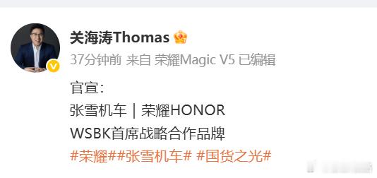 荣耀张雪机车战略合作