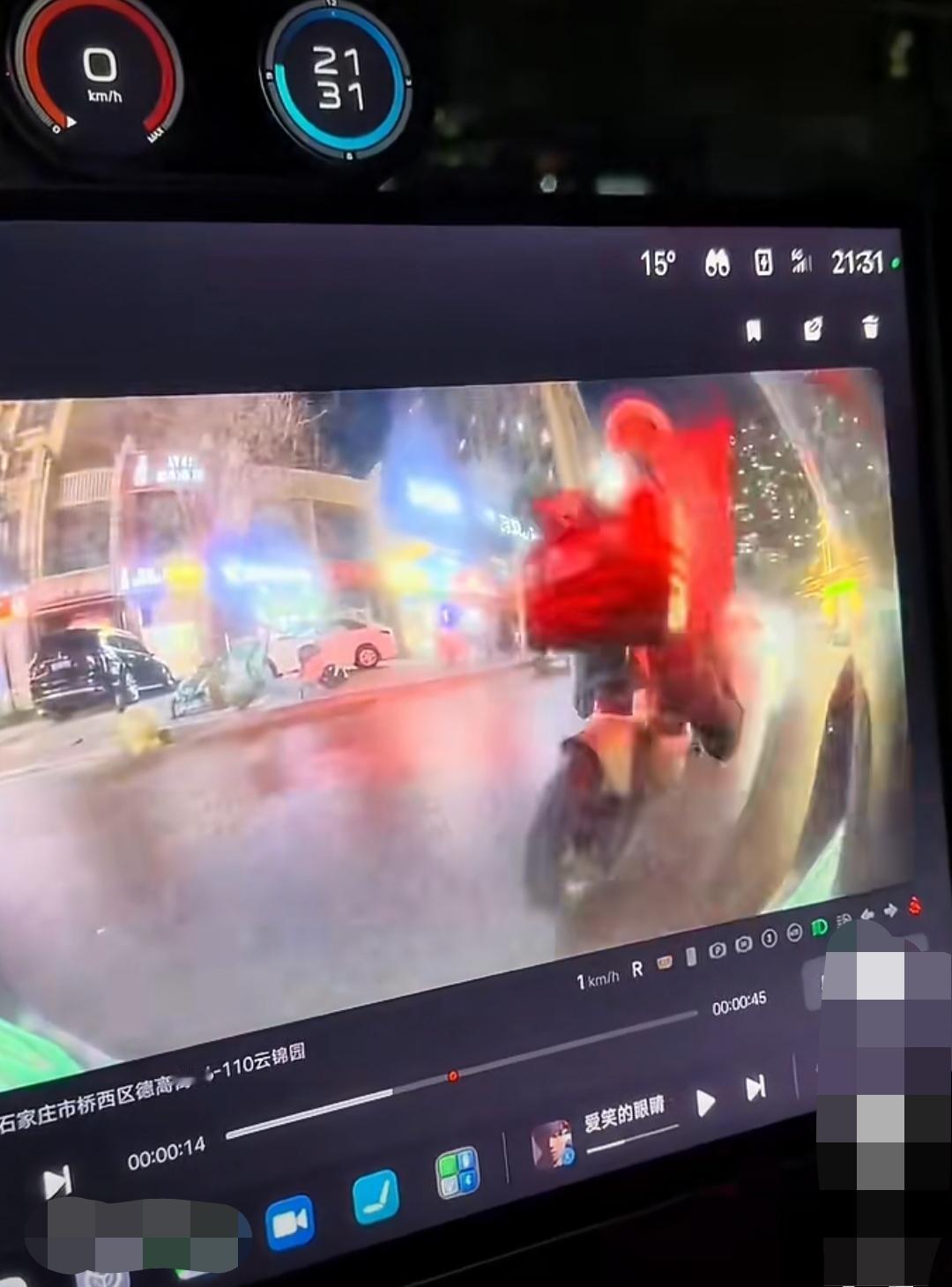 4月7日,河北石家庄。男子驾车准备靠边停车时,一名女生骑电动车从后面上来躲闪不及发生追尾。