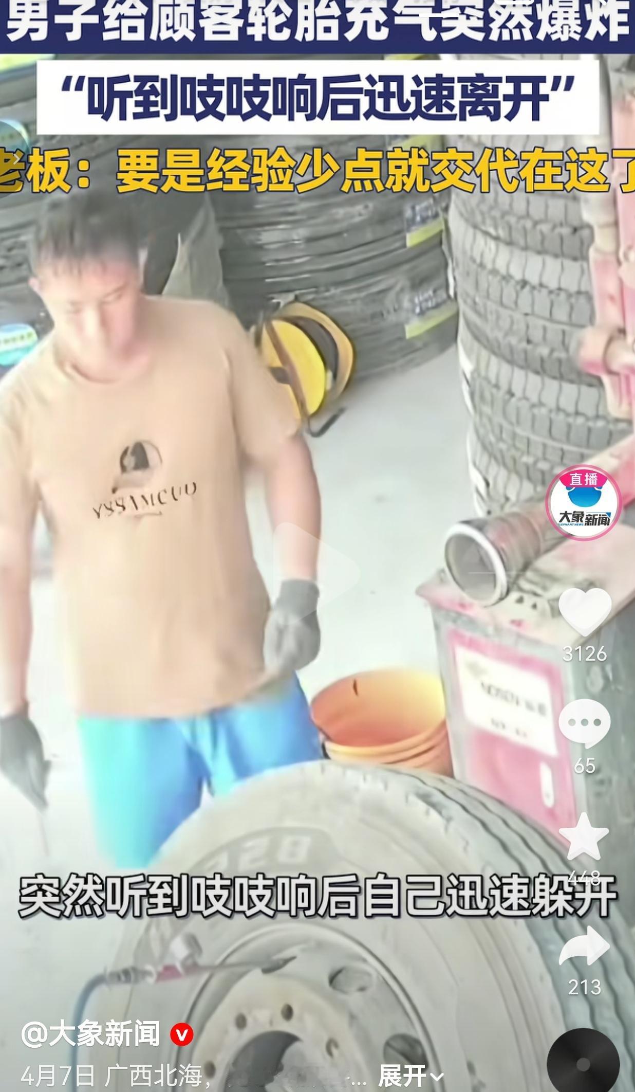这个轮胎爆炸的瞬间,给所有人上了一课:任何行业,都有看不见的危险;任何时候,都不能拿生命当儿戏。