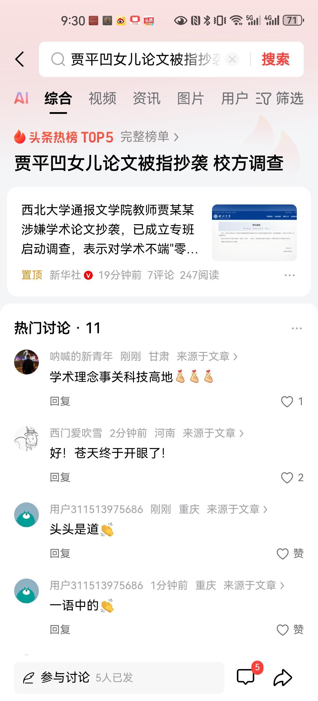 校方调查早应该成立工作专班,进行各项问题调查了!大家觉得呢?西北大学与贾平凹、贾浅浅两代交往颇深,难道真的要捆在一台一架马车上吗?就正如西北大学所说的,“对于学术不端行为”秉承着零容忍态度,那么网上争议那么大,网上争议时间那么长,其实早该启动调查流程了。
