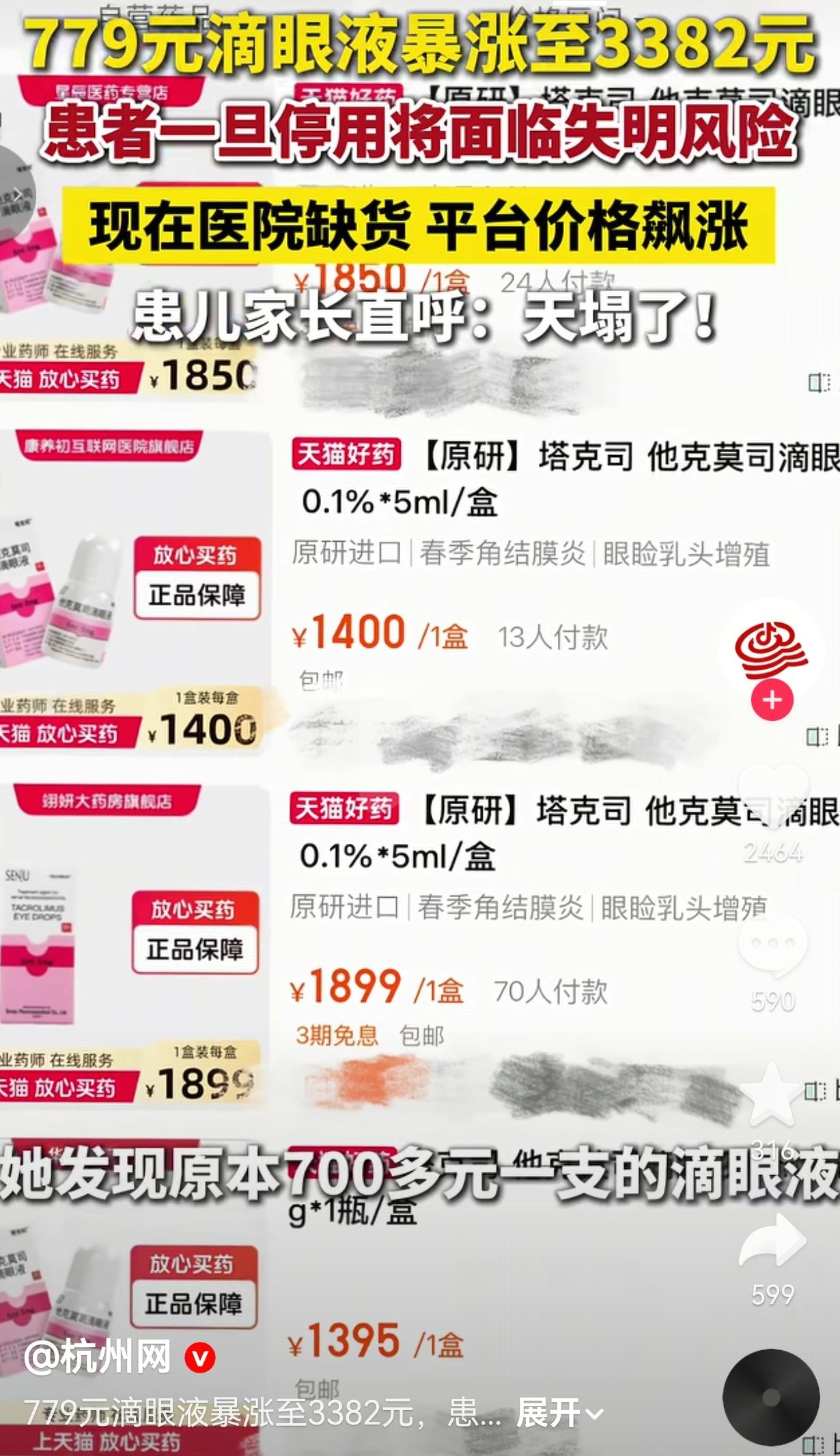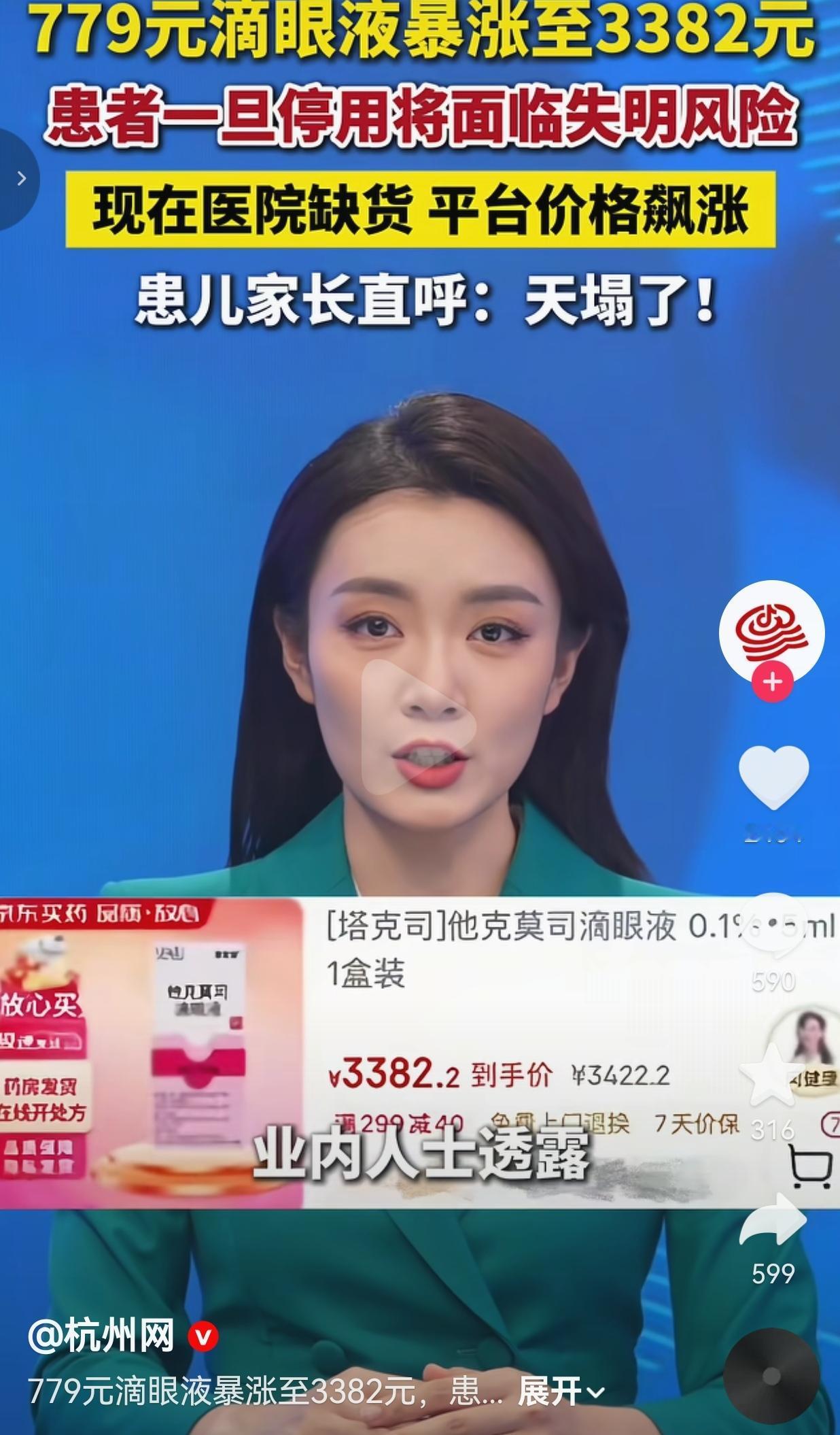 这波天价操作真的快要把人逼疯了!一瓶5毫升的眼药水,硬生生从779块被炒到3382块,翻了快四倍!这不是奢侈品,是角膜移植患者的救命处方药啊!一旦断药,移植的角膜就可能排异坏死,人直接重回黑暗!
