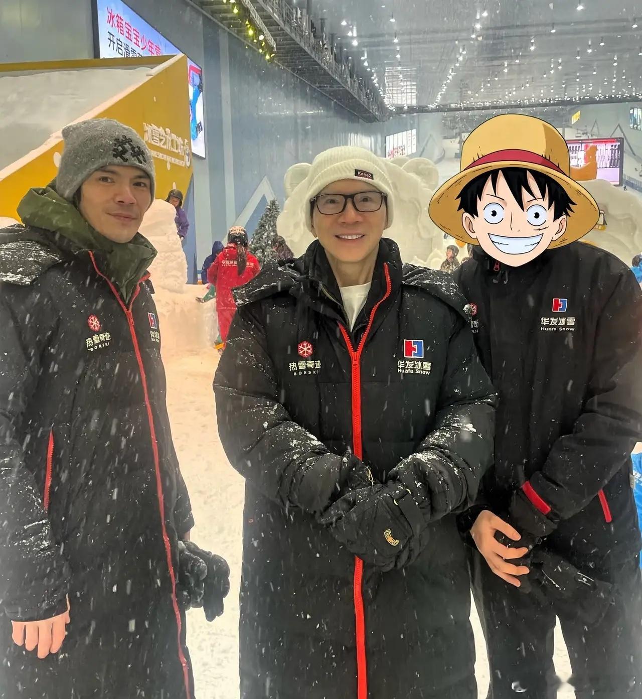有网友在深圳华发冰雪世界,偶遇向佐郭碧婷一家,带着孩子玩雪!没想到向华强也去了,他还是蛮硬朗的,都70多了,还是精神抖擞!