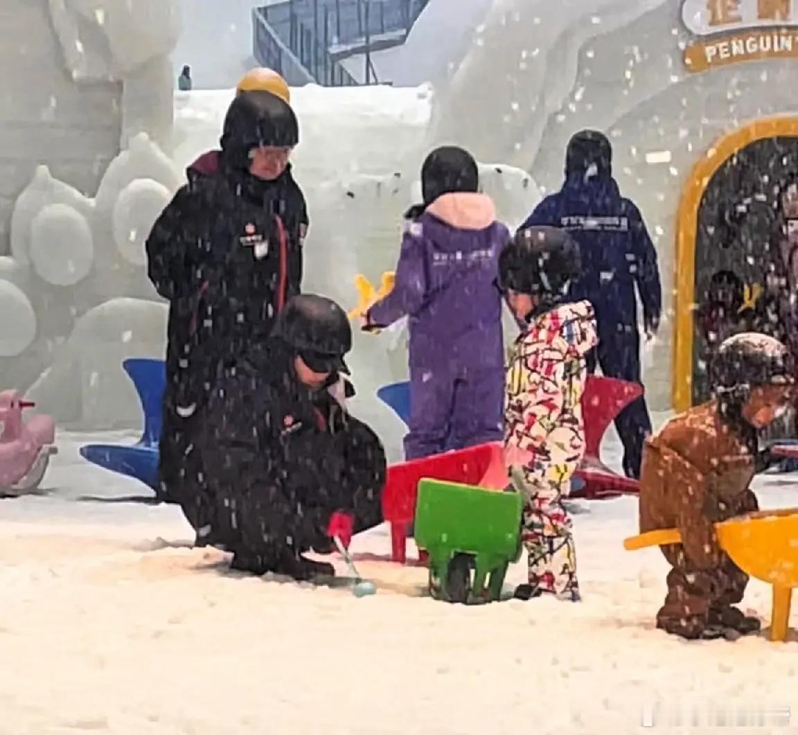 有网友在深圳华发冰雪世界,偶遇向佐郭碧婷一家,带着孩子玩雪!没想到向华强也去了,