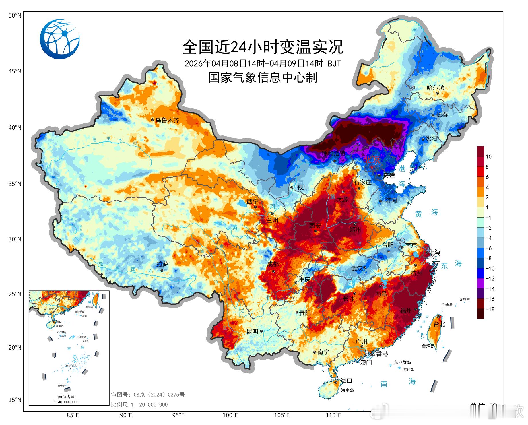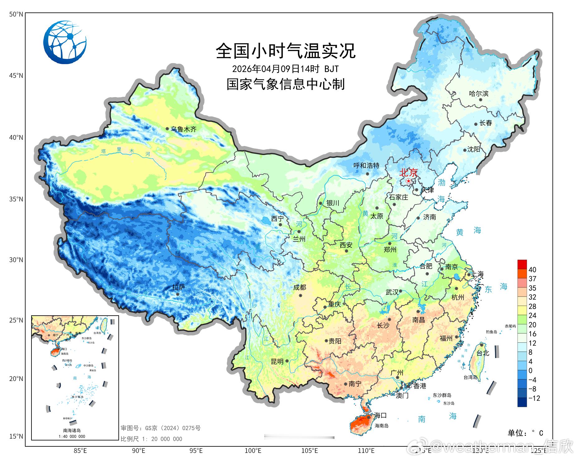 今天因为天空放晴,浙江福建河南陕西山西等地气温大幅上升。浙江文成升18.3℃、福建寿宁升17.7℃、河南栾川升16.4℃、陕西甘泉升14.3℃、山西昔阳升12.7℃,为各自省份14时升温最强站点。截止14时最高,海口39.2℃、福州33℃、南昌32.4℃、长沙32.6℃,成都温江27.9℃、均创今年气温新高,南昌长沙也是今年首次上30℃。海口打破4月上旬最高纪录。