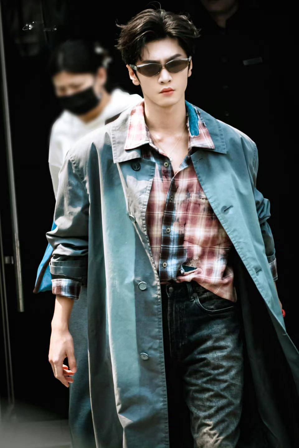 哲远请把长风衣焊在身上墨镜帅哥来也🕶️陈哲远长风衣墨镜造型陈哲远hi6上班路透