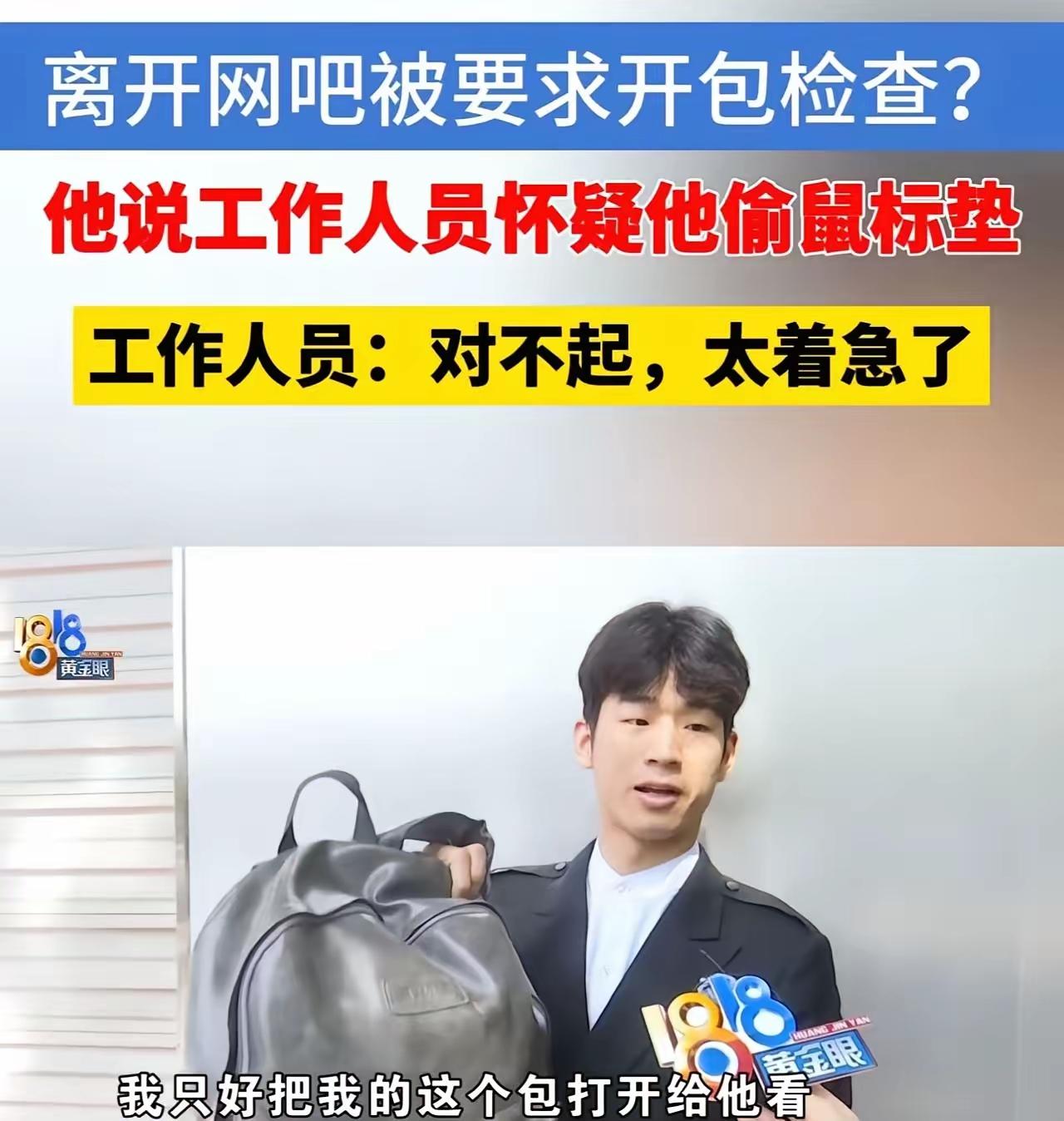 浙江杭州,“五星上将”保安,下班后去网吧上网,却被网吧老板质疑偷走鼠标垫,要求翻包检查!小伙:“作为保卫一方,防偷防盗的人,被质疑成小偷,实在是气不过!”