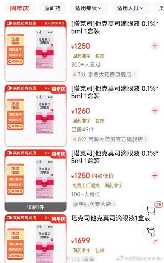 779元滴眼液暴涨至3382元 患者:停用将面临失明风险近日,广东刘女士的孩子因角膜移植术后需长期使用他克莫司滴眼液。 她告诉记者,一旦停用这款滴眼液,移植的角膜植片就会坏死,孩子将面临失明风险。 然而,最近一次复查开药时,该药在医院缺货,刘女士只能自行网购。她发现,原本700多元一支的滴眼液,平台价格涨到了1700至3000多元不等,个别平台价格甚至翻了四倍。 不少患者在社交平台吐槽,该药因缺货大幅涨价。 他克莫司滴眼液是角膜移植术后抗排斥反应的首选治疗药物,属于免疫抑制剂,用于防止人体免疫系统攻击移植的角膜。这类药物使用人群相对较少,属于“小众药”,一旦生产环节出现问题,就容易出现供应短缺。业内人士透露,这款滴眼液在全国多地医院、药房均供应不稳定,近期频繁出现断货情况。刘女士既担心价格高昂难以负担,又担心后续彻底断药,直言感觉天都快塌了,期盼药品能早日恢复稳定供应。中山大学中山眼科中心药学部介绍,他克莫司滴眼液是该院的院内制剂,患者可通过现场挂号开处方或互联网医院复诊开药两种方式获取。该药需2至8度冷藏保存,因此暂不支持快递配送,患者需到院区现场取药。