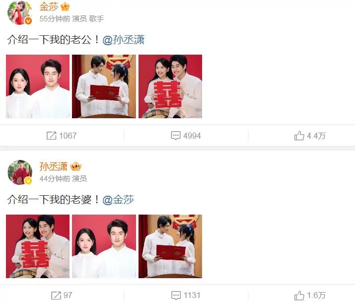 金莎终于和她的小男朋友领结婚证了。进入婚姻状态。不知道这段女大男小,年龄差十几岁