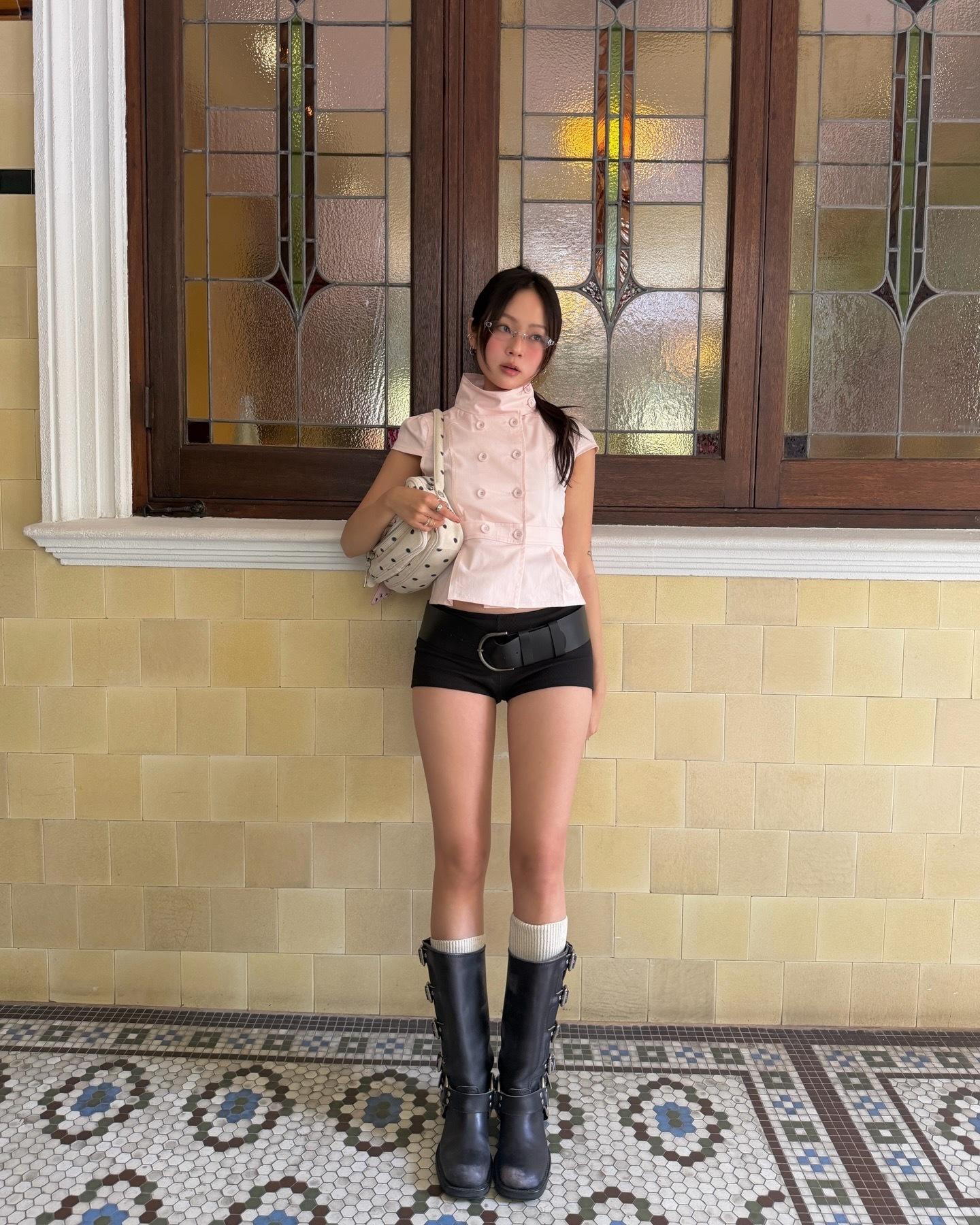 温柔甜美的白衬衫搭配黑色短裙,清新自然,气质满分!🌸💕