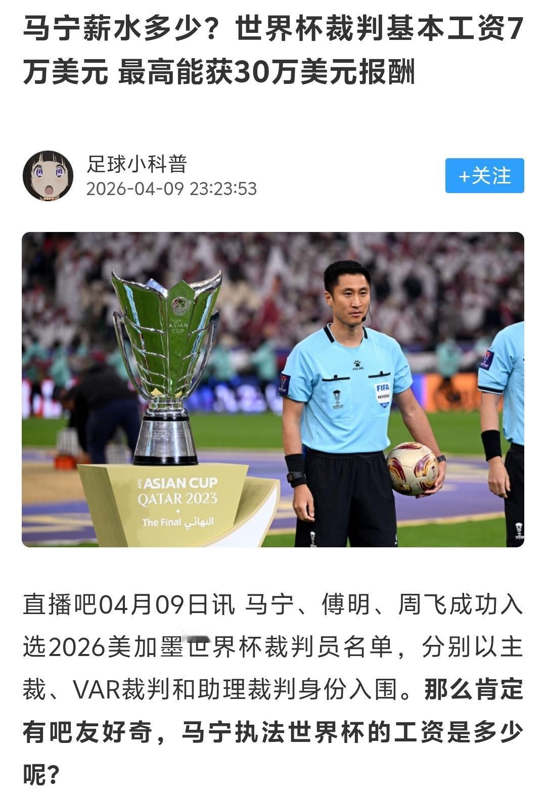 曾经去中超现场看了几场马宁执法的比赛,现场真的是有球迷从头骂到比赛结束,可是马宁再被球迷骂,人家还入选了世界杯执法名单,还是以主裁判身份参与的,看来无论在亚足联还是国际足联眼里,马宁执法水平还是被认可的!
