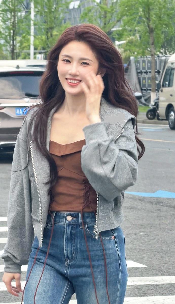 张慧雯脚踩时尚的板鞋,看起来像个靓丽的少女,越变越迷人了。