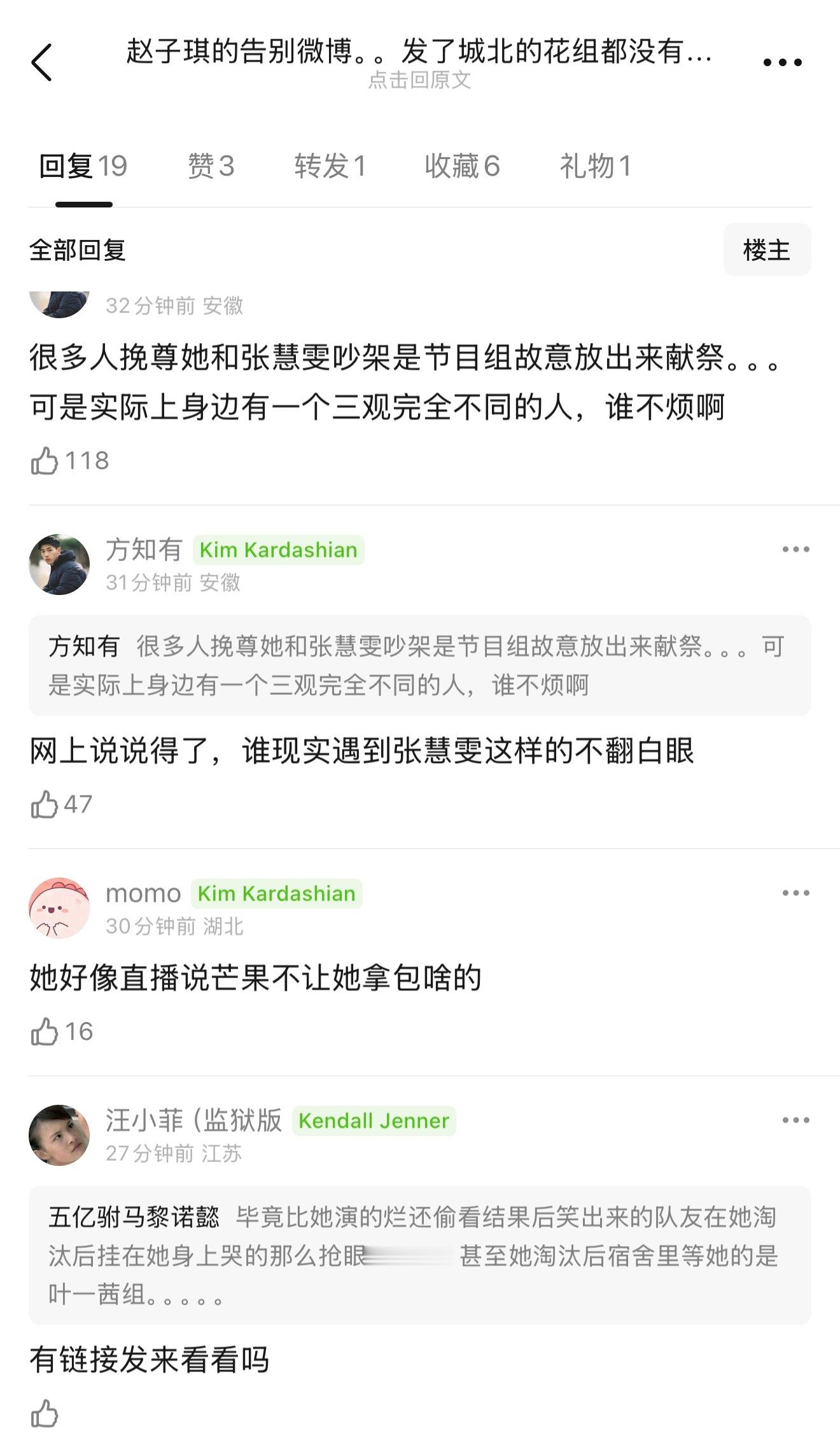 赵子琪的告别微博,发了城北的花组都没有发自己队友。很多人挽尊她和张慧雯吵架是节目