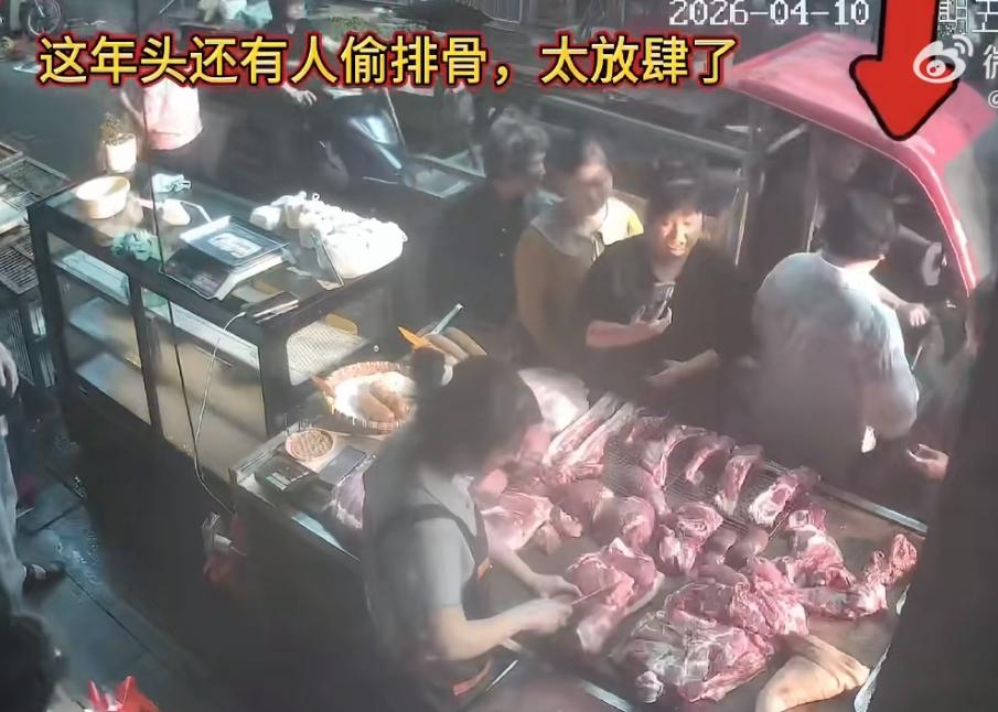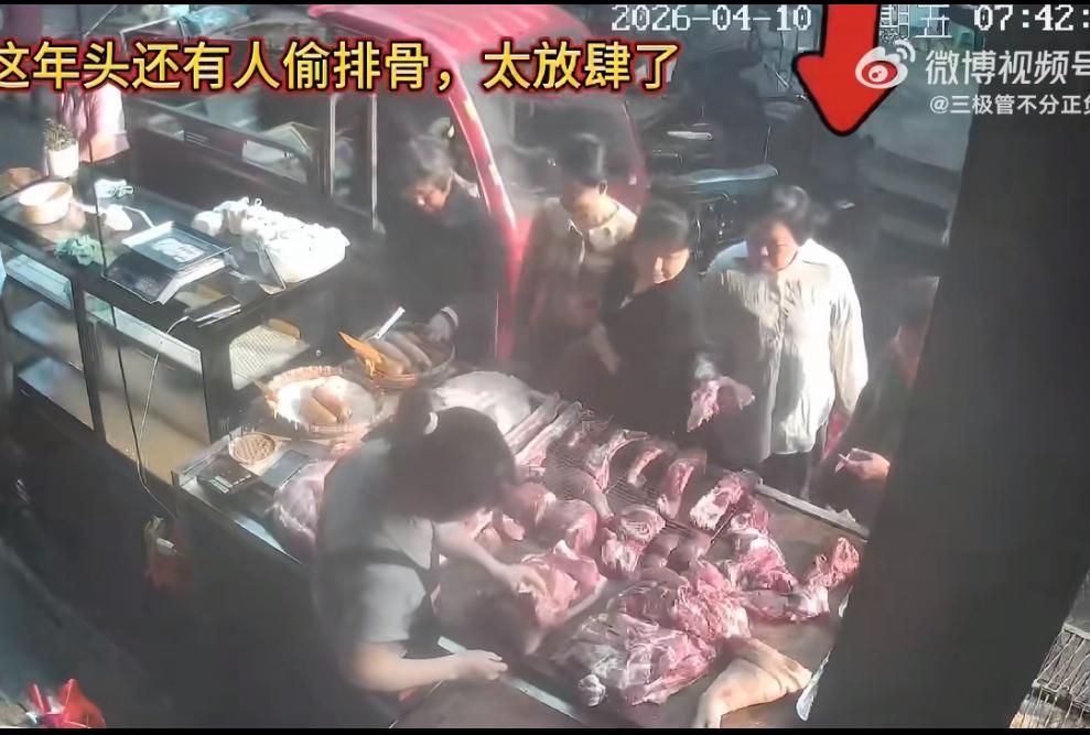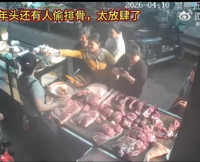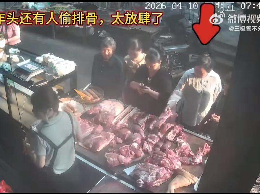 监控拍下大妈偷排骨的全过程,心理素质、老练程度绝非一般人。4 月 10 日在湖南衡阳城西农贸市场,多人围着一个肉铺,这个大妈趁机挤了进去。手里拿起一块排骨,假装在挑选。她为了不被人发现。把其中的一块排骨补位到空缺的那里,再拿起那一块排骨,看着老板娘正在专心剁肉,没有注意到她,快速的背身把排骨装到口袋里,慢慢移动到人群后面再看了一眼,没有被发现,再转身大摇大摆的离去。