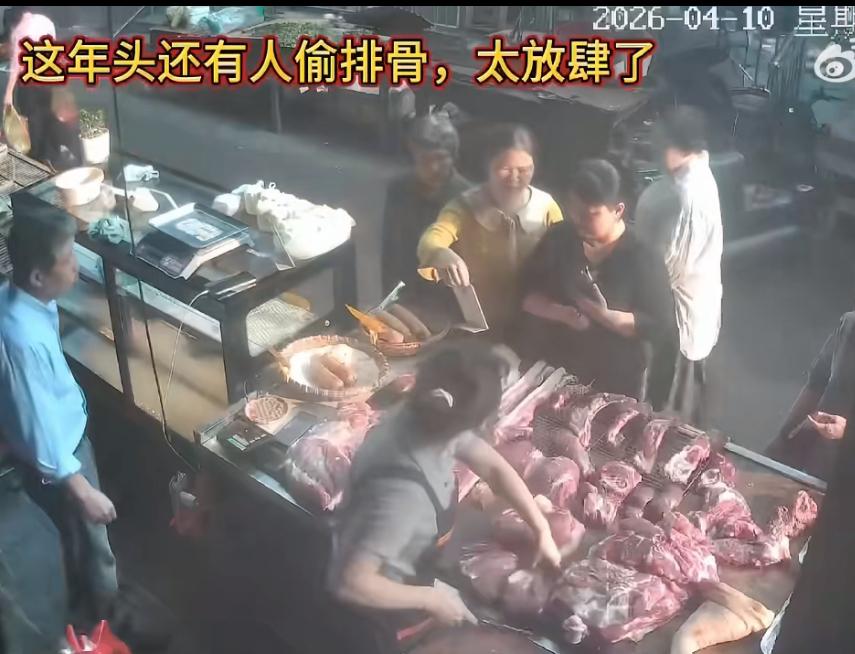 现在猪肉不到 10 块一斤,排骨不到 20 一斤。这是活不起还是吃不起?大妈这么娴熟的动作明显是一个惯犯。
