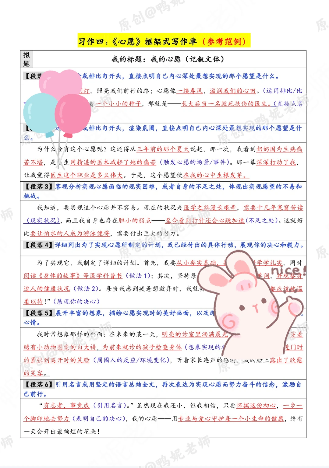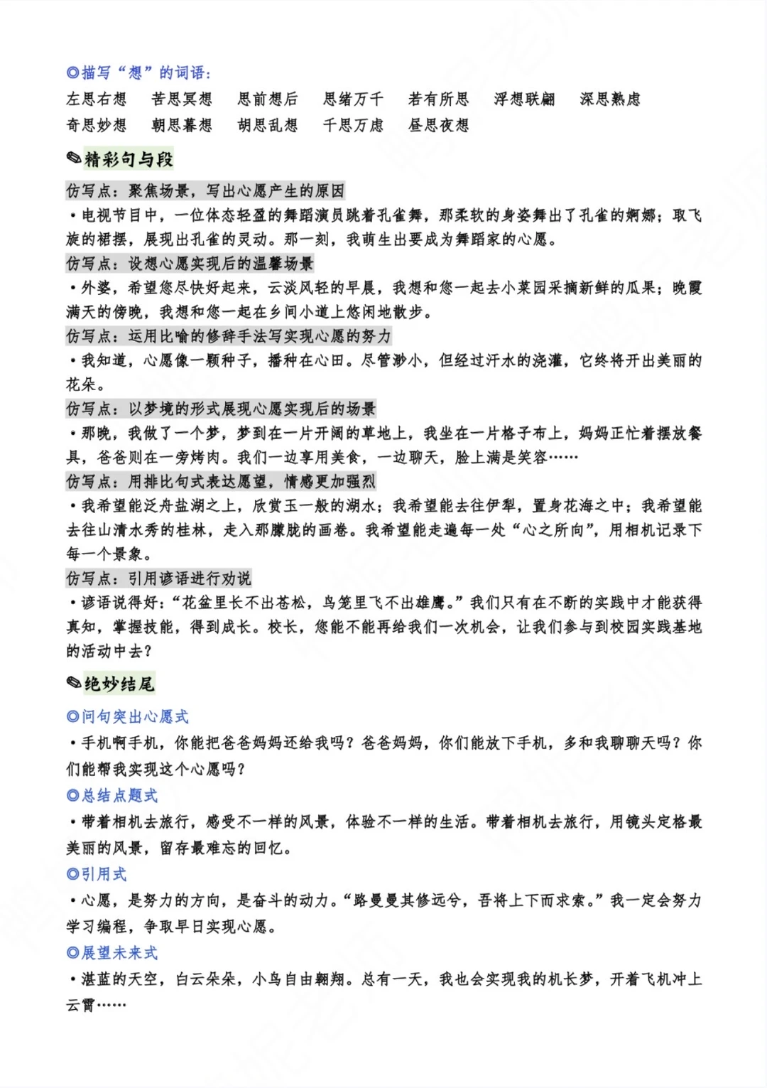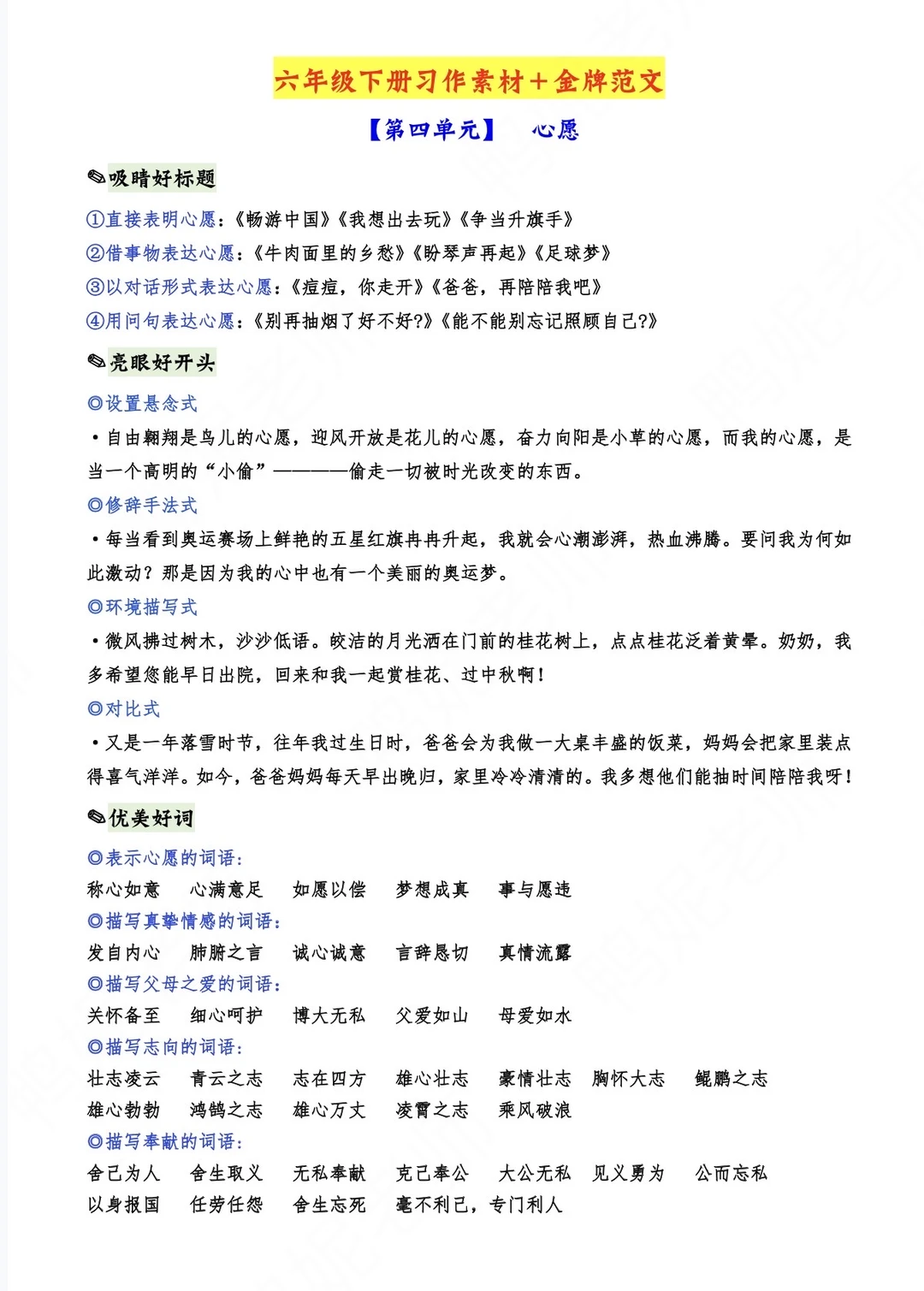六下习作四《心愿》写作支架➕素材