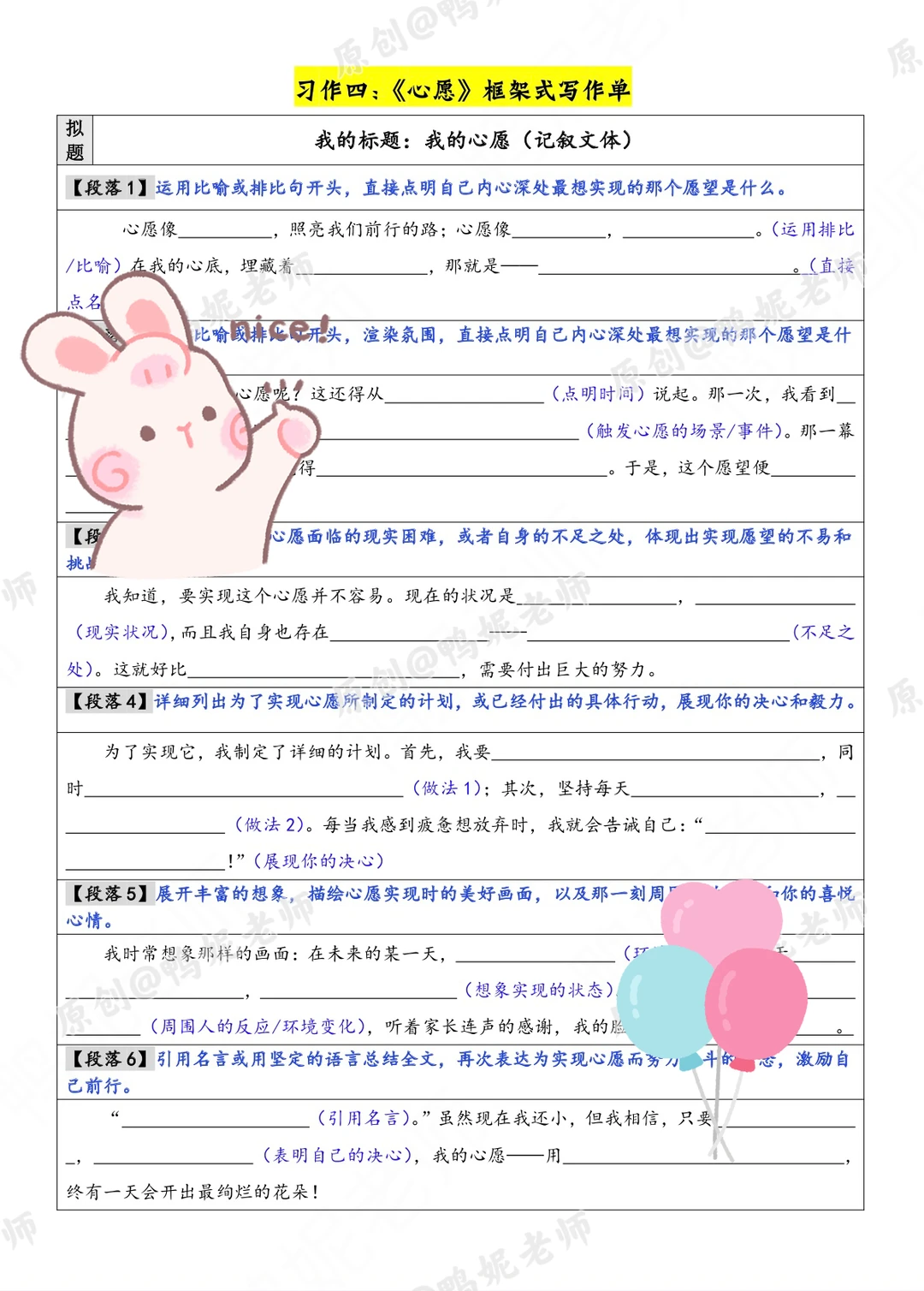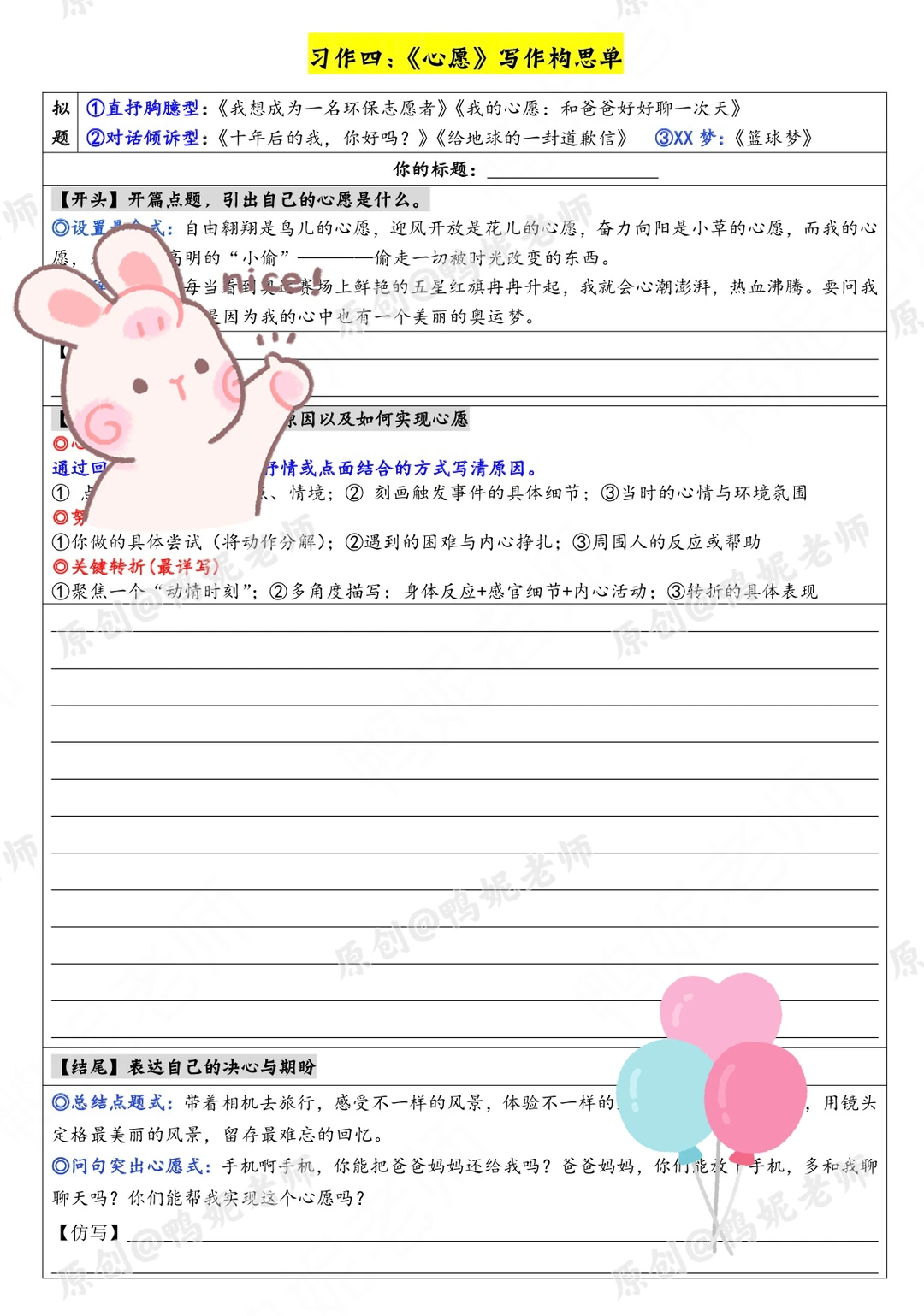 ①原创写作构思单,帮助学生理清写作框架(适合中上等生)