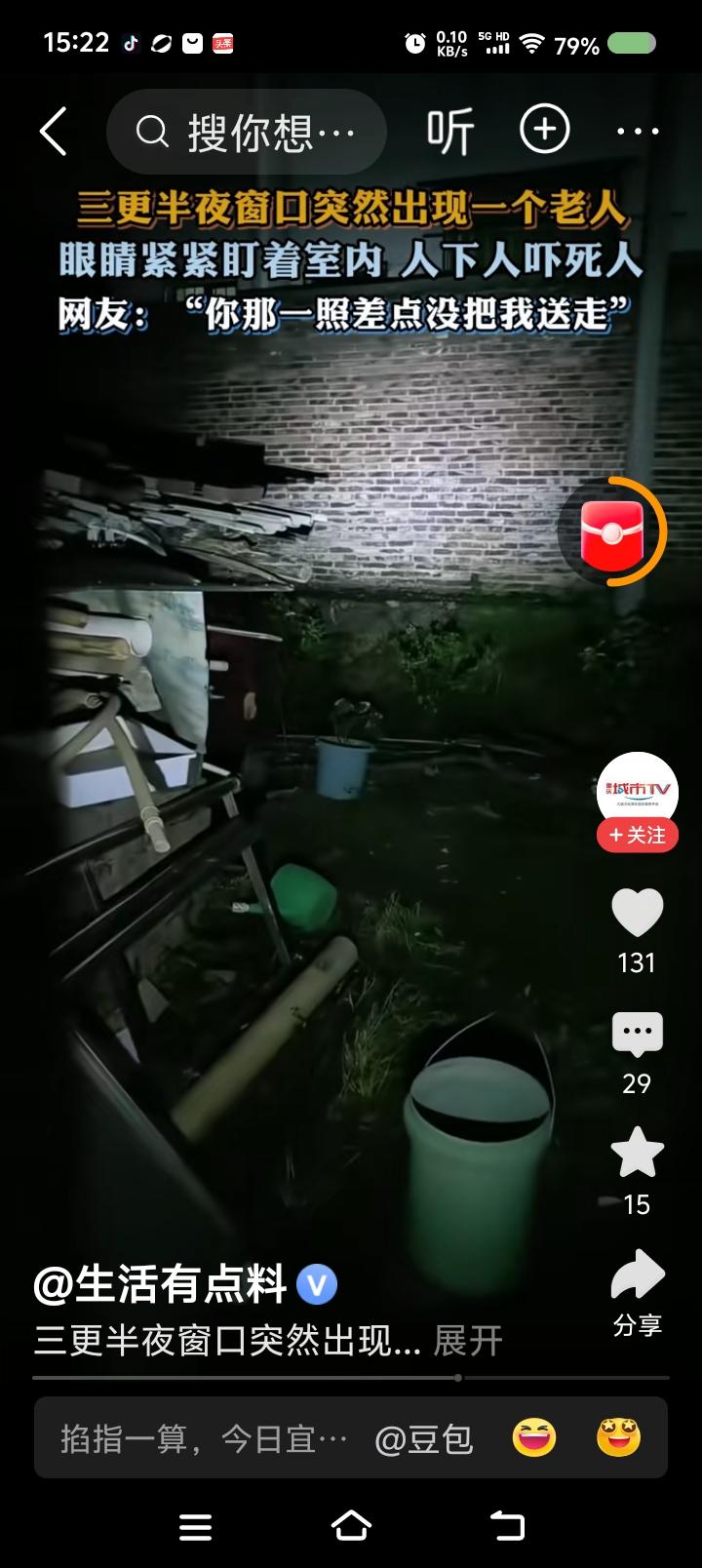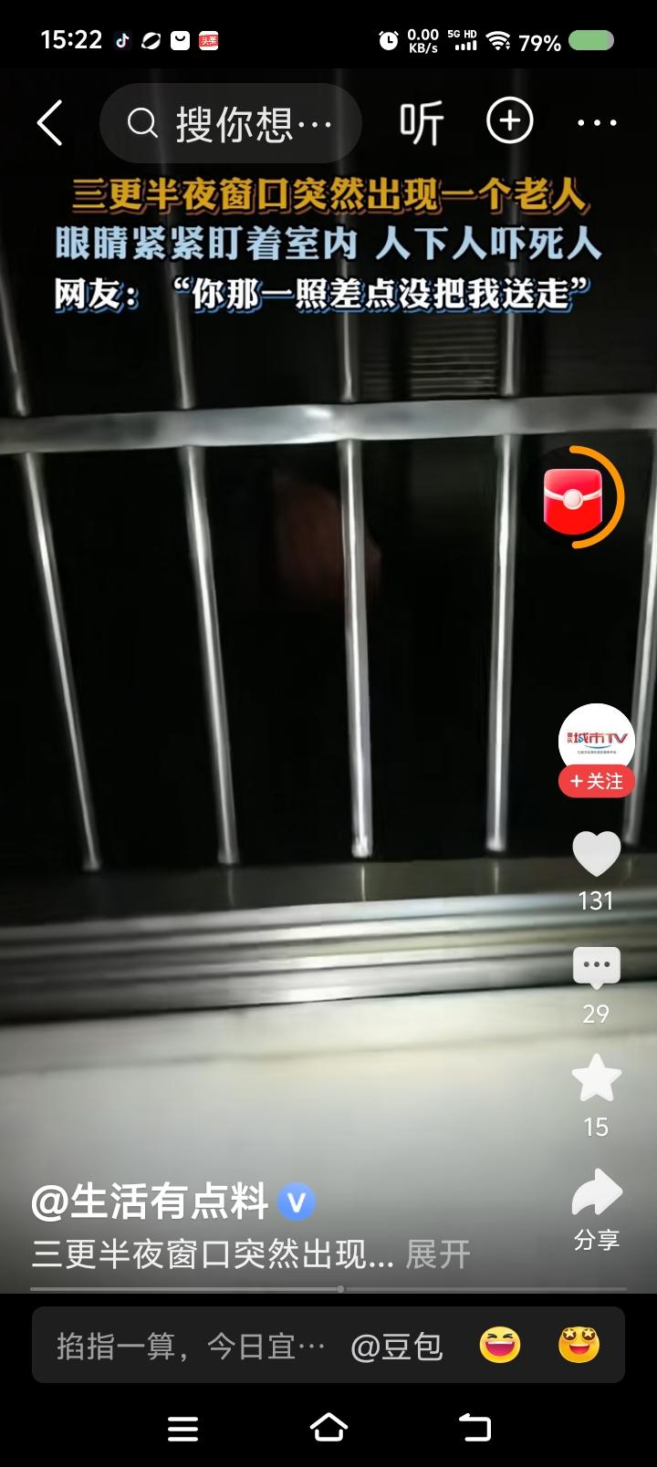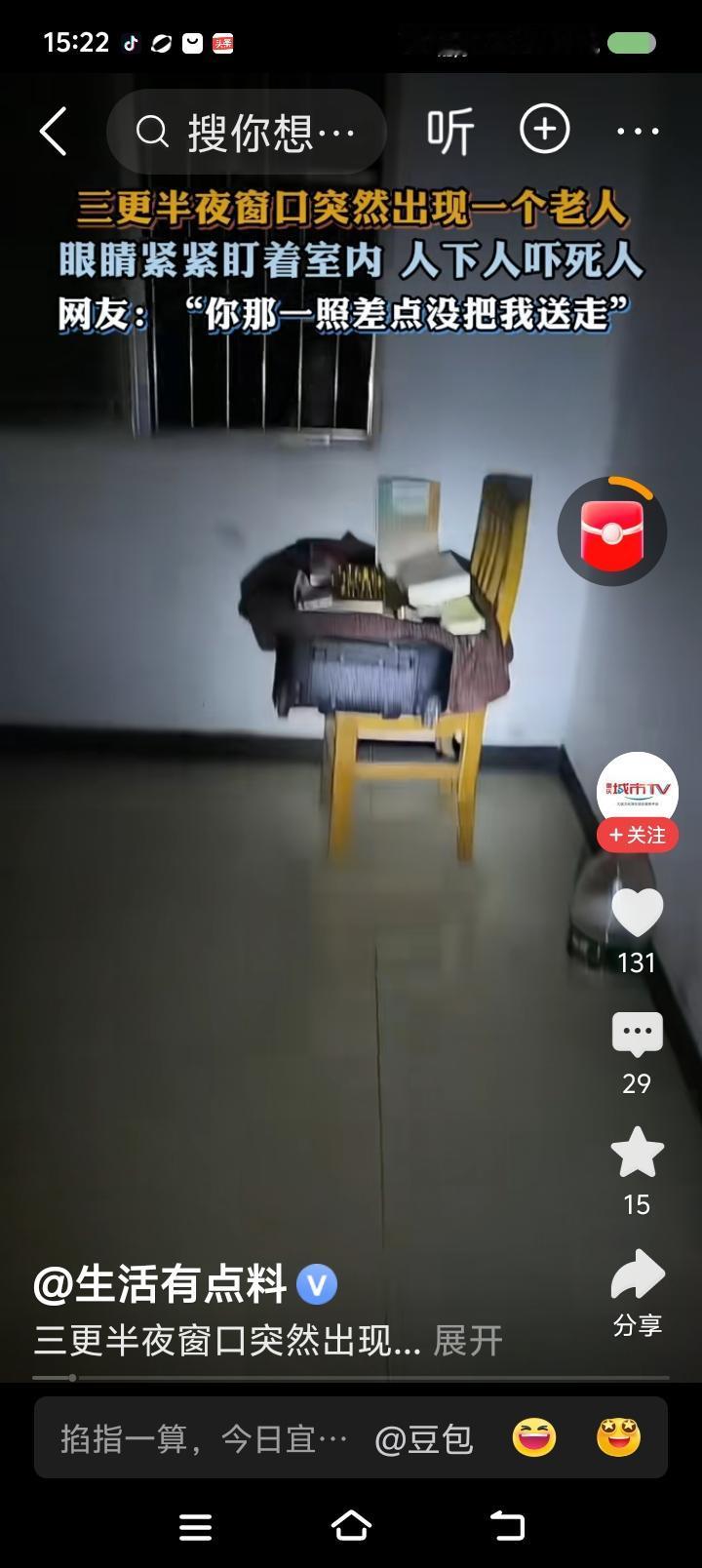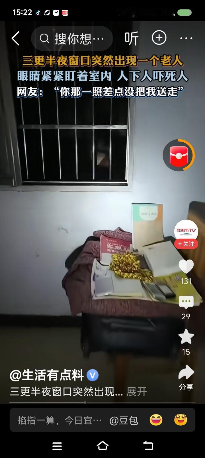 这视频是真的么?—— 据报道,三更半夜,某家窗户上出现一个老人的脸。主人手电照射