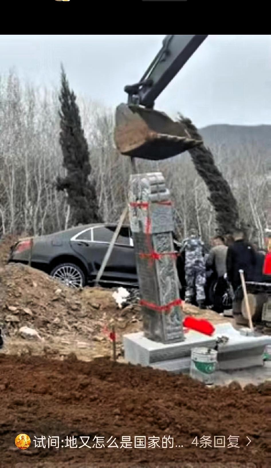 辽惊现最奢华陪葬!网友爆料,疑似某地一位有钱人离世,家人竟用一辆崭新的奔驰S450L作为陪葬品,车牌还是四连号数字,现场动用挖掘机开挖土坑,车身铺着红布,最后整车被泥土慢慢掩埋,不少路人都亲眼目睹全程。