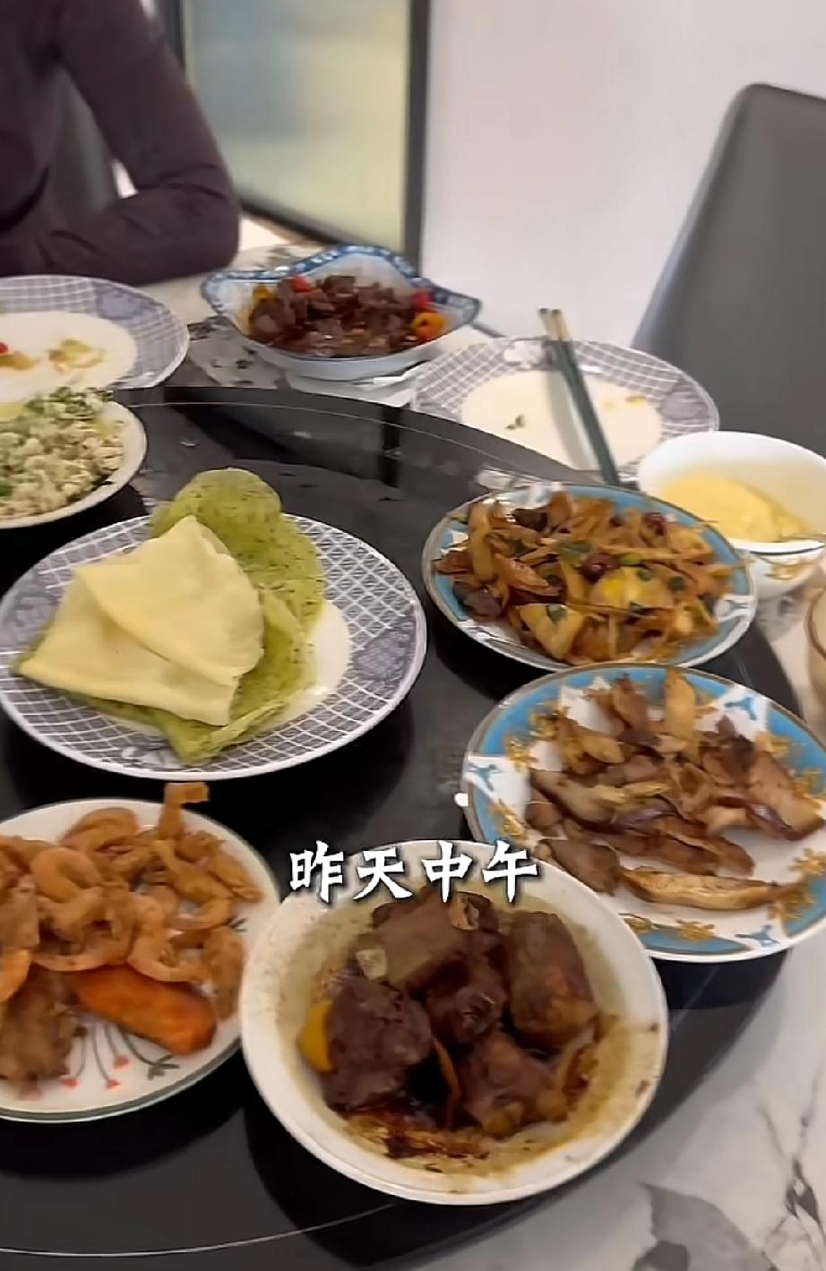 甚至隔夜的青菜也留着吃了,一般家庭隔夜青菜类的都是倒掉了,李国庆夫妇俩还舍不得,继续就吃了。