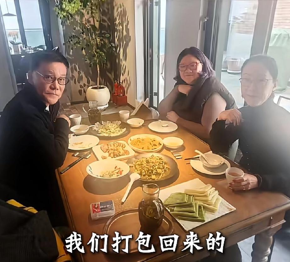 别看两人在家吃的饭挺丰盛,但其实都是“剩”的,是他们两口子前一天和陈凯歌前妻,著名时尚人洪晃聚餐时,打包的剩菜带回来的。