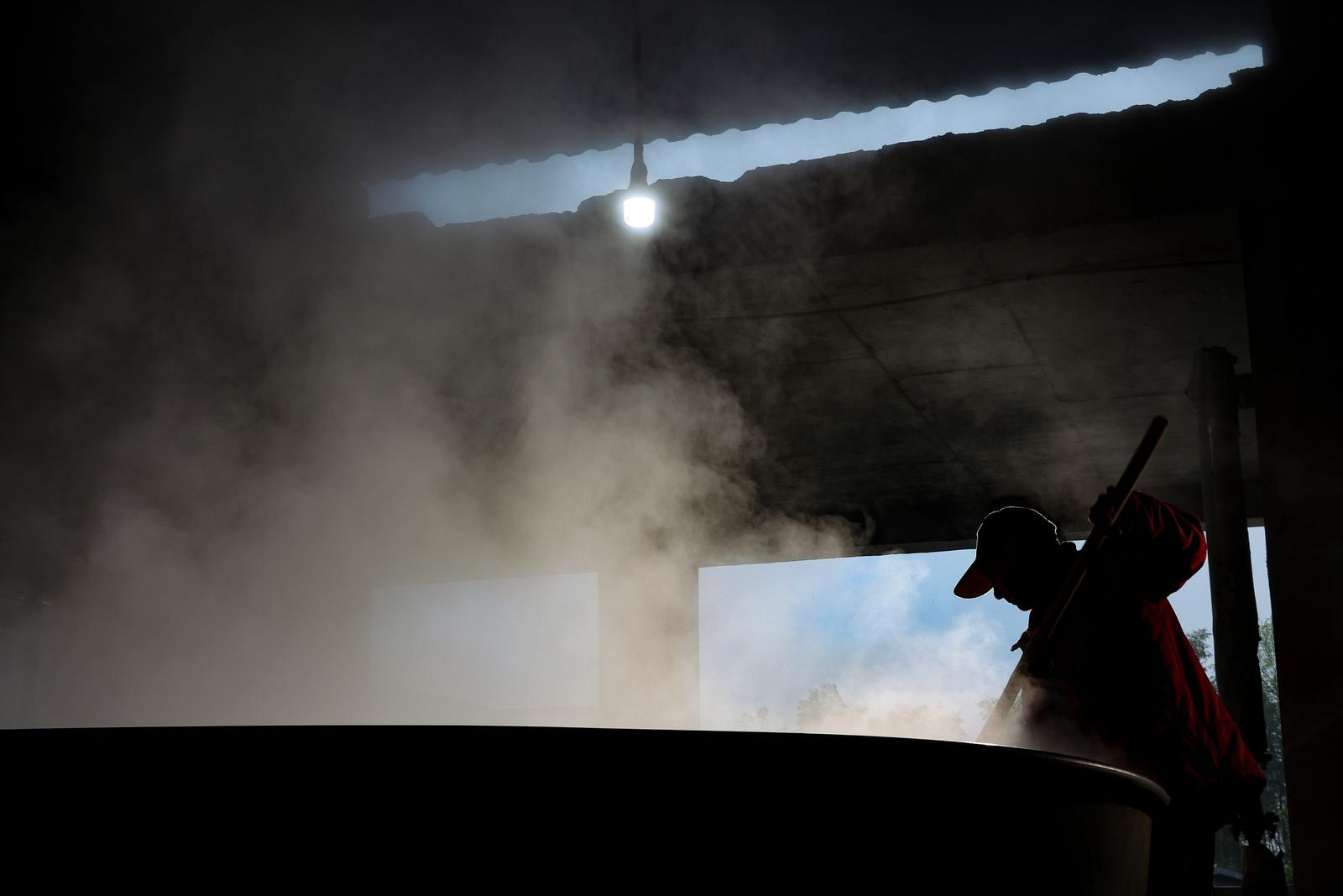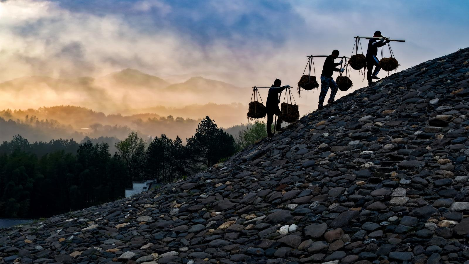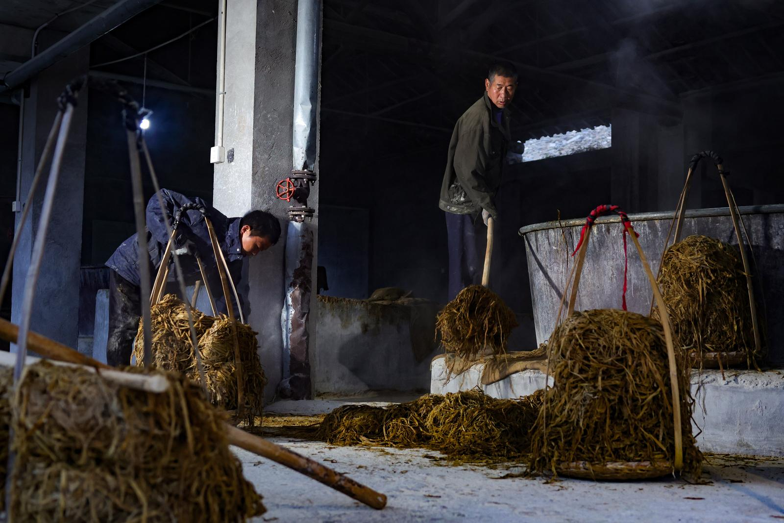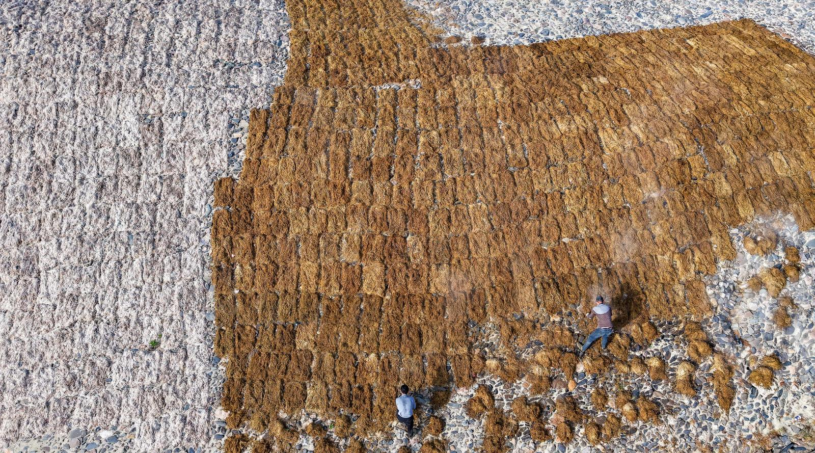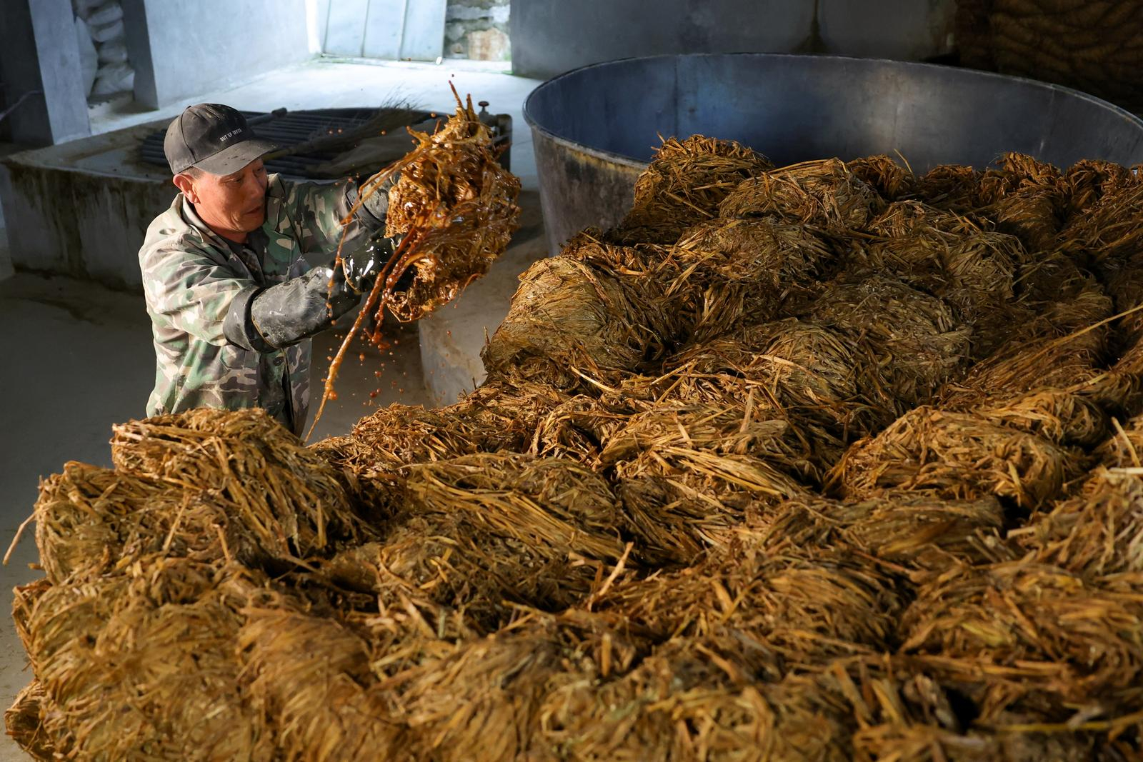 3月31日,晨雾中的郑村燎草基地已经热闹起来了。工匠们正对沙田稻草进行“端料”“抖草”,蒸煮后的原料被均匀摊晒在向阳的山坡上,借日光与微生物缓慢漂白、纯化,完成第一次“呼吸”。风霜雨露褪去杂色,原料变得柔软洁白,这是时光赋予的温润底色。