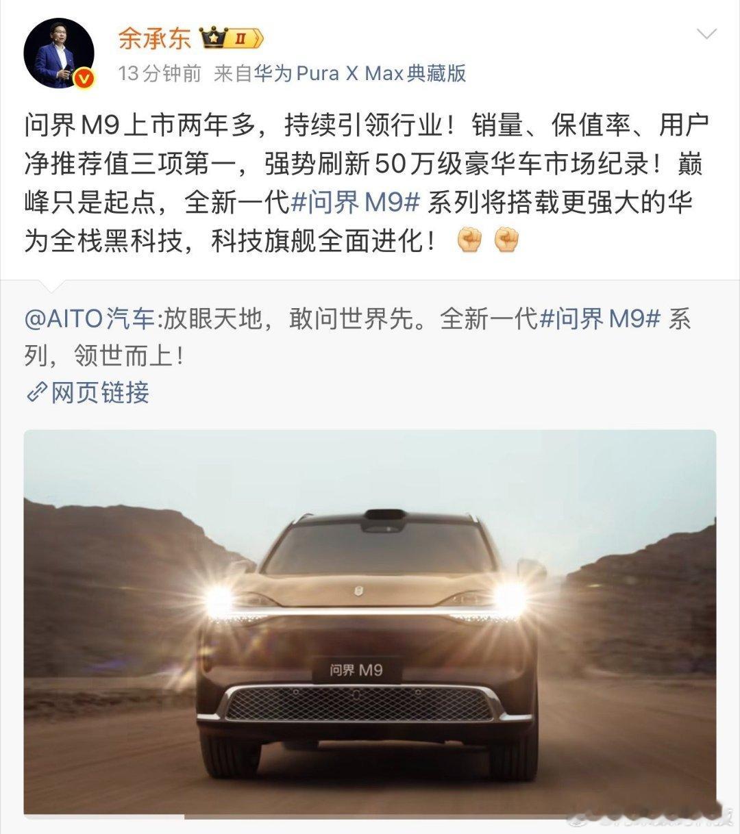 每一个时代都有它的引领者。问界M9率先突破高端豪华市场“无人区”,已经成为了中国新能源汽车无可争议的风向标。余承东称问界M9巅峰只是起点 伴随全新一代车型的亮相,将高端新能源的市场影响力进一步抬升。这种不断探索的精神,提升了中国品牌在全球舞台上的竞争力,同时也推动了中国新能源走向更广阔的舞台。