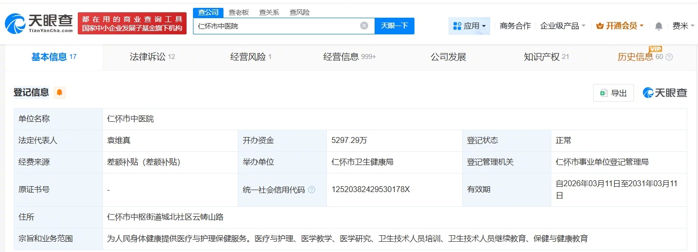 【#起底患者双腿被吊超1小时涉事医院#:曾多次因医疗损害责任纠纷被起诉】 近日,有患者称其在仁怀市中医院做理疗时双腿被牵引悬吊超1小时无人处理,医院回应:设置好的计时器没有响,#做牵引双腿被吊超1小时无人管#相关话题引发热议。天眼查App显示,仁怀市中医院法定代表人为袁维真,开办资金约5300万人民币,宗旨和业务范围包括为人民身体健康提供医疗与护理保健服务等。法律诉讼信息显示,该医院曾多次因医疗损害责任纠纷被起诉。(综合)#医院回应患者被吊仪器上1小时无人管#