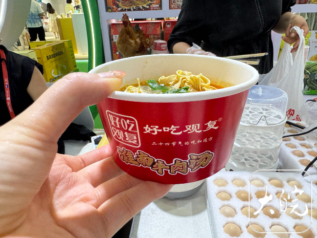 除此之外,天之红祁门红茶的馥郁甘醇、东方果园果蔬制品的天然纯粹、黄山特色农品的原汁原味,尽显安徽生态农业的绿色魅力;而詹记桃酥的酥香、淮南牛肉汤的醇厚,更将地道江淮风味搬进展馆,用舌尖上的美味,传递着最质朴的烟火温情,让观众在品味中感受安徽的人文底蕴与生活美学。