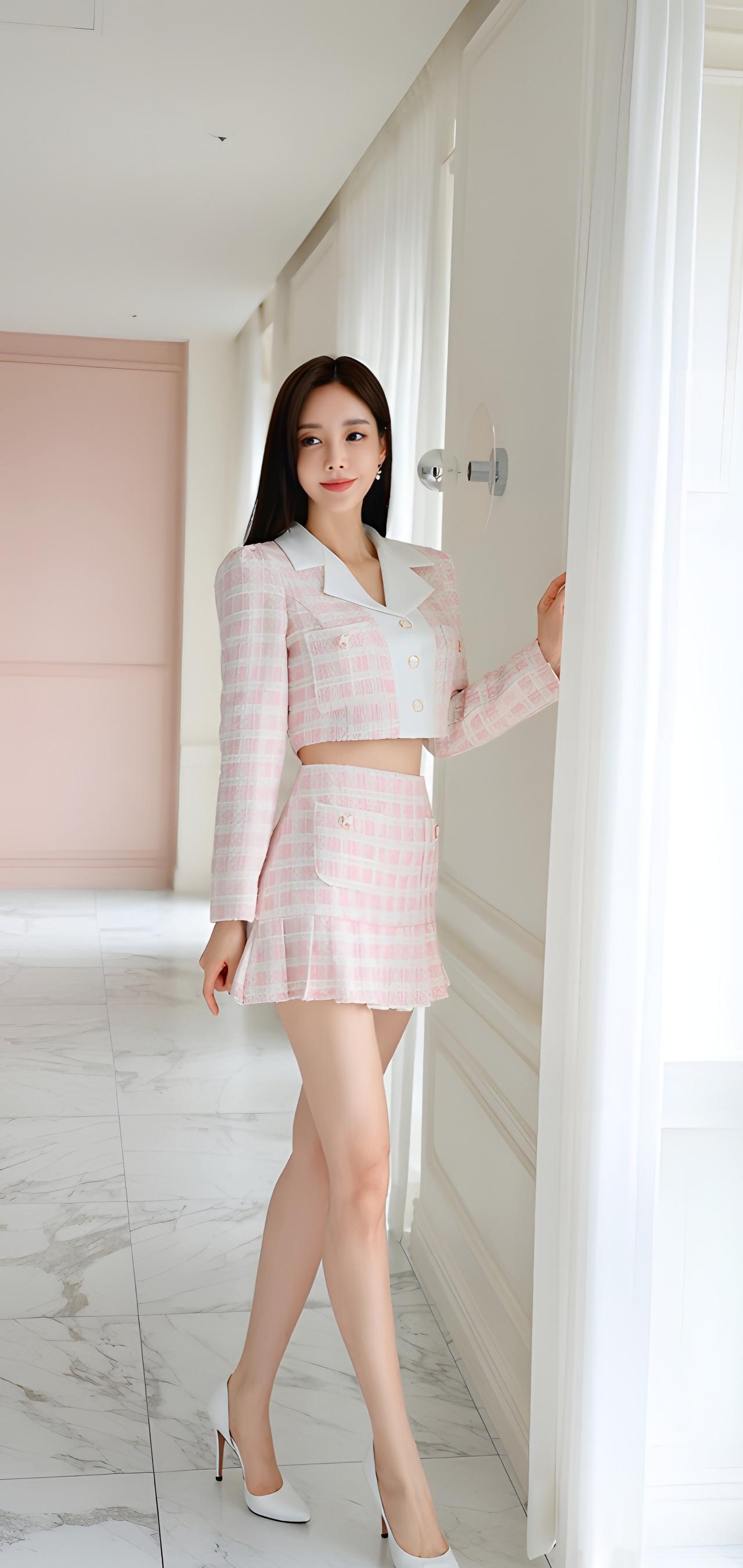 少女心爆棚的粉色格纹套装,甜美可爱,快来get同款吧!💖👗👠