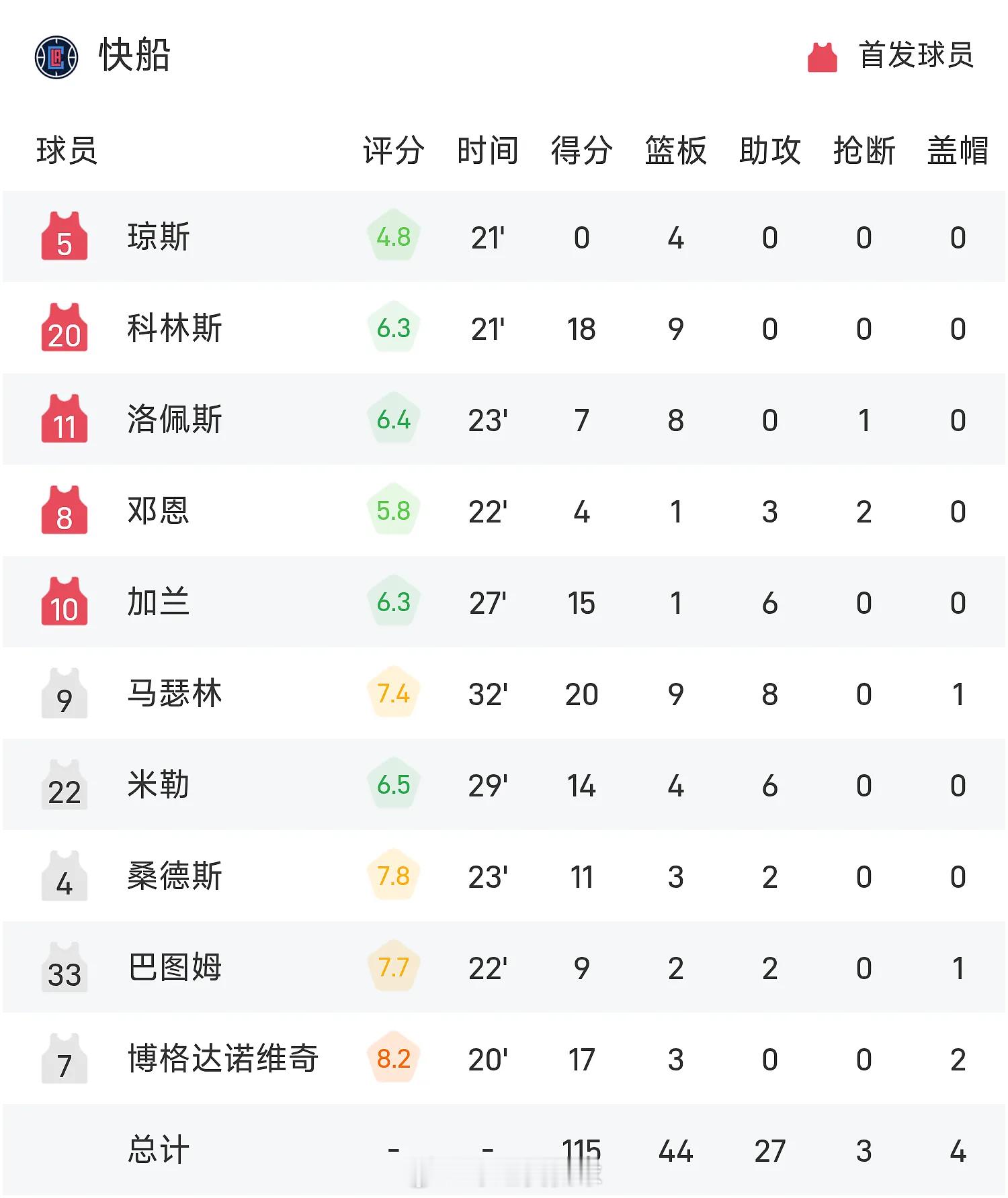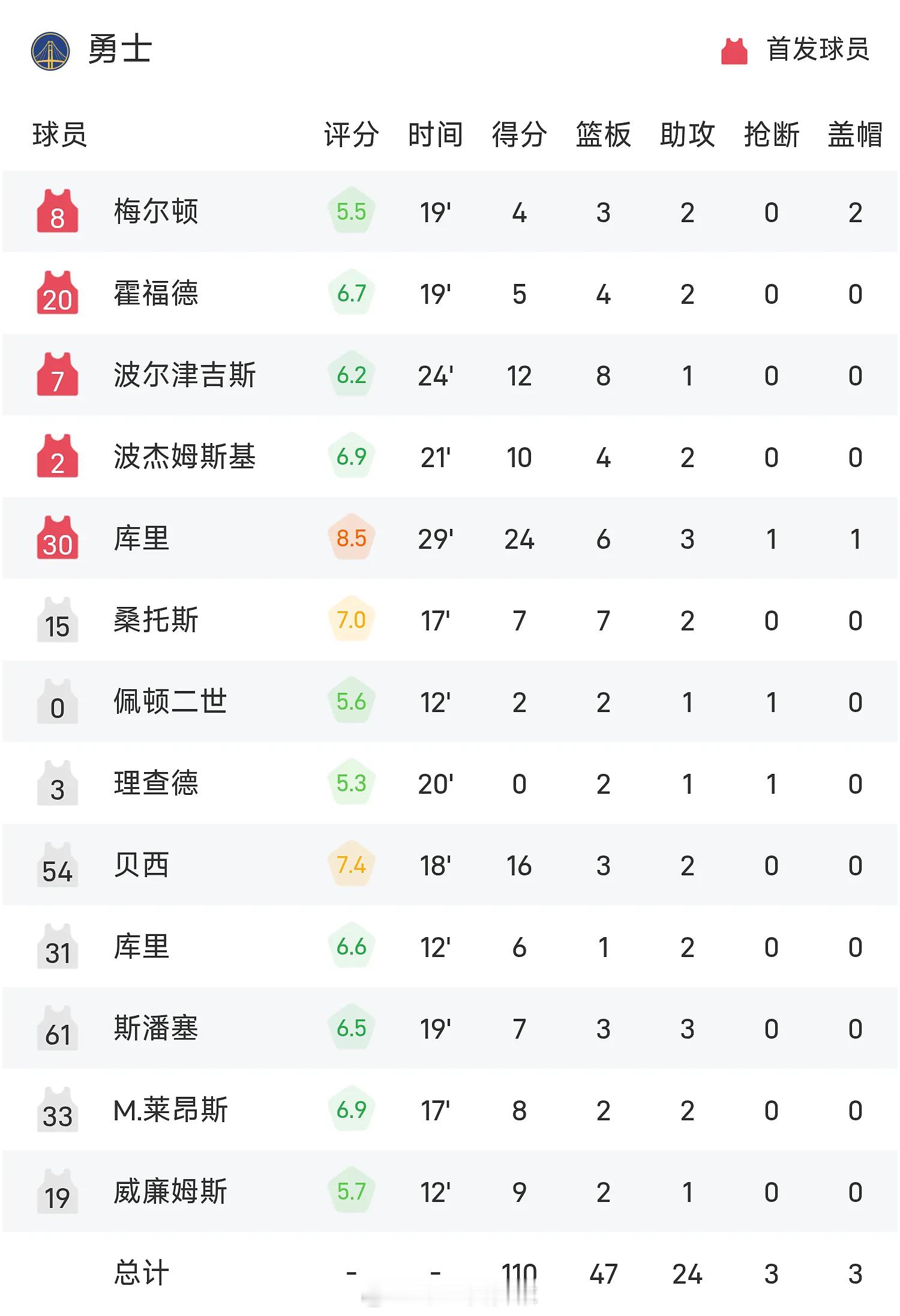 马瑟林得到20分9板8助率队取胜,库里空砍全场最高的24分6板3助。