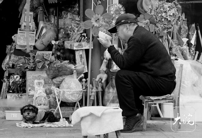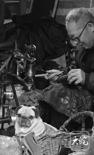 巷口的修鞋铺里,老师傅低头认真修补鞋底,身旁的小狗安静卧着,默默看着往来行人,像在等候着下一位顾客进门。裁缝摊前,老师傅静静等候客人取衣,一针一线,皆是匠心。在这些不慌不忙的等待里,藏着手艺人的坚守,也藏着老城不变的人情味。