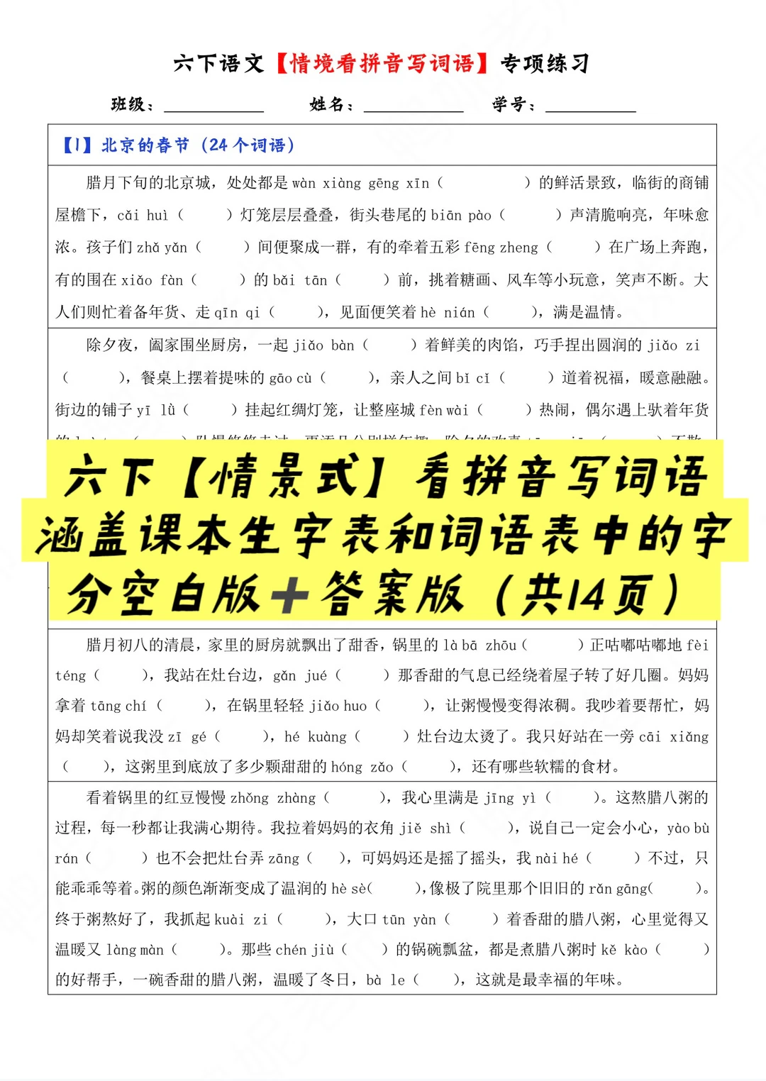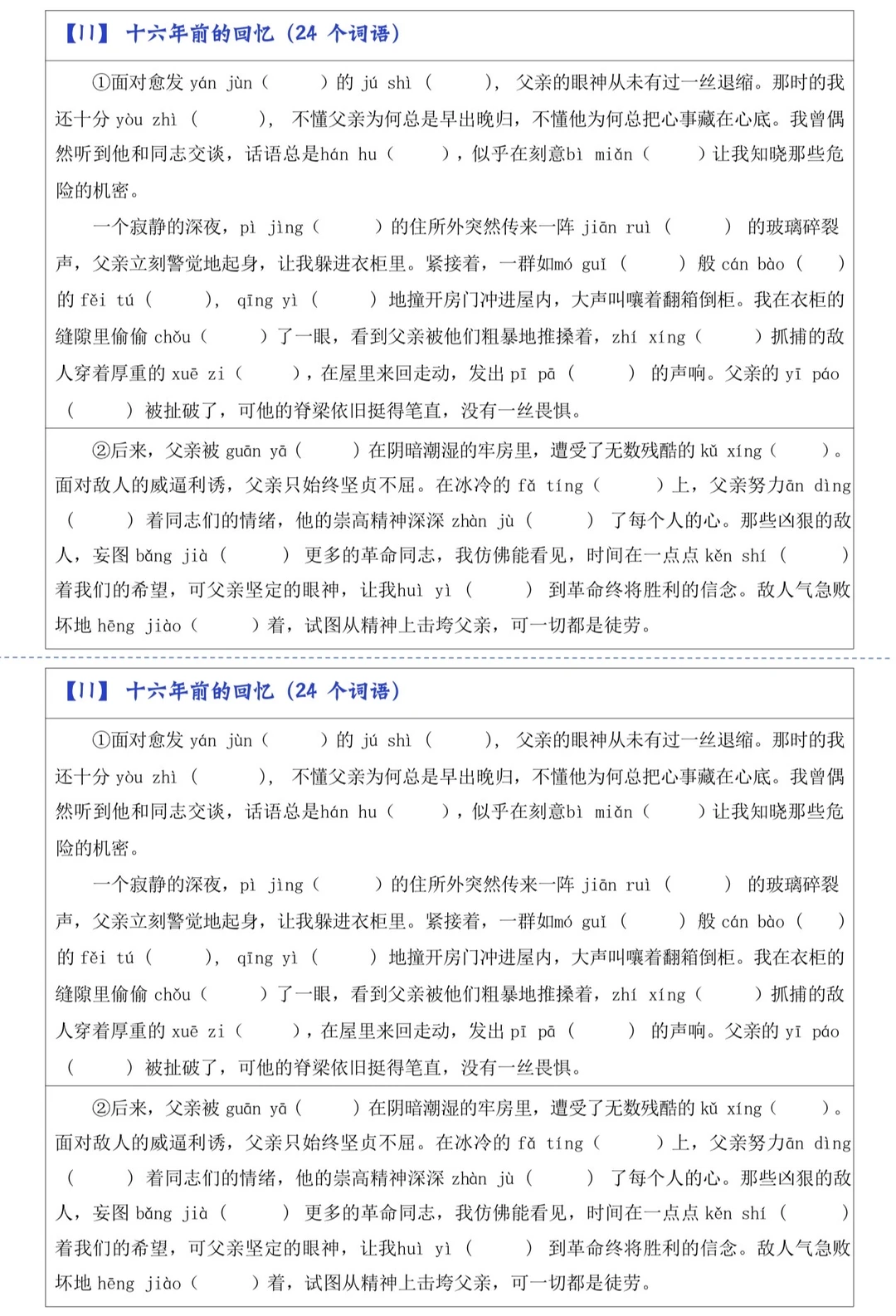 六下|《十六年前的回忆》【情境式】词语默写