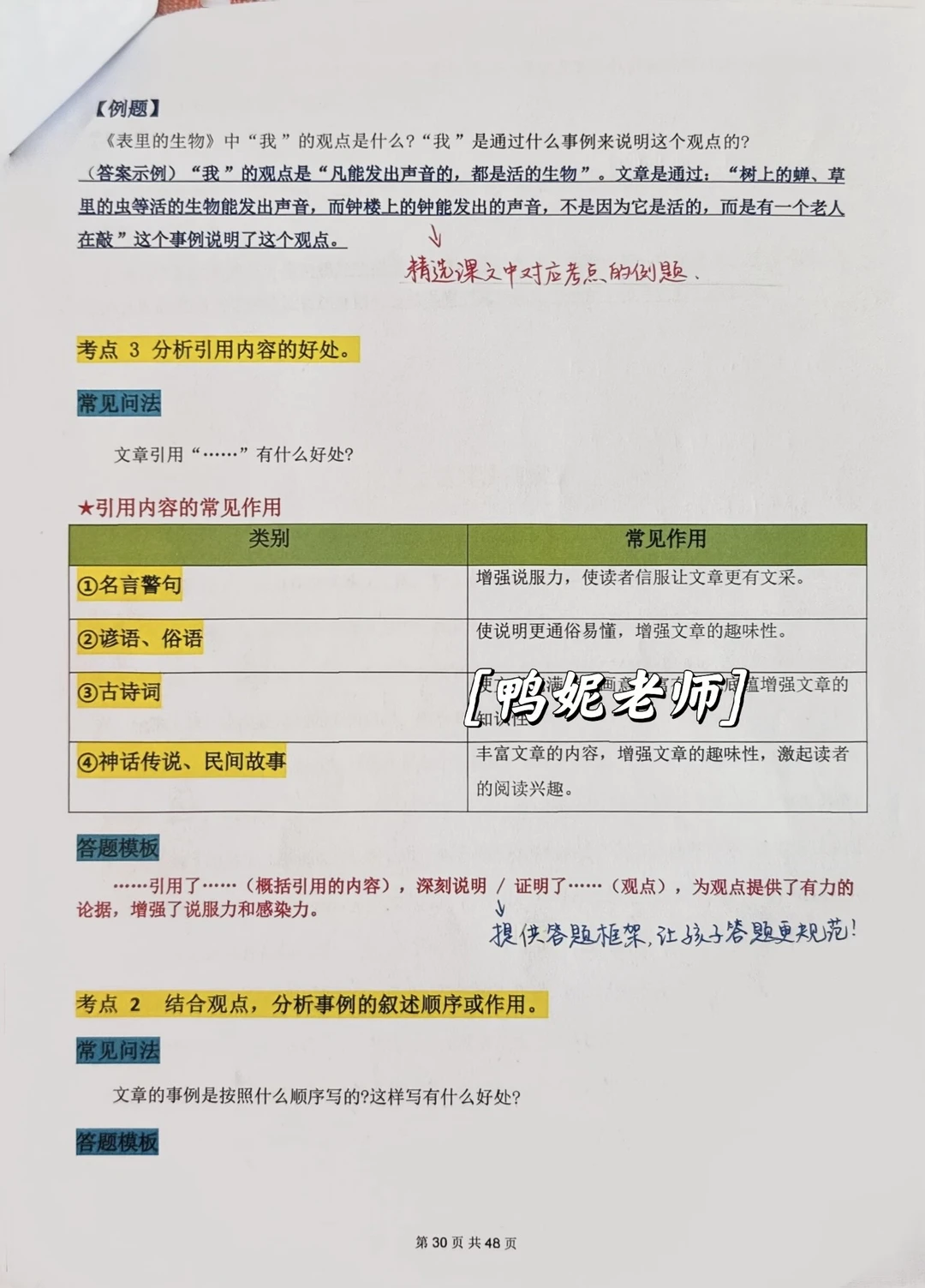 考点二:结合观点,分析事例的叙述顺序或作用。