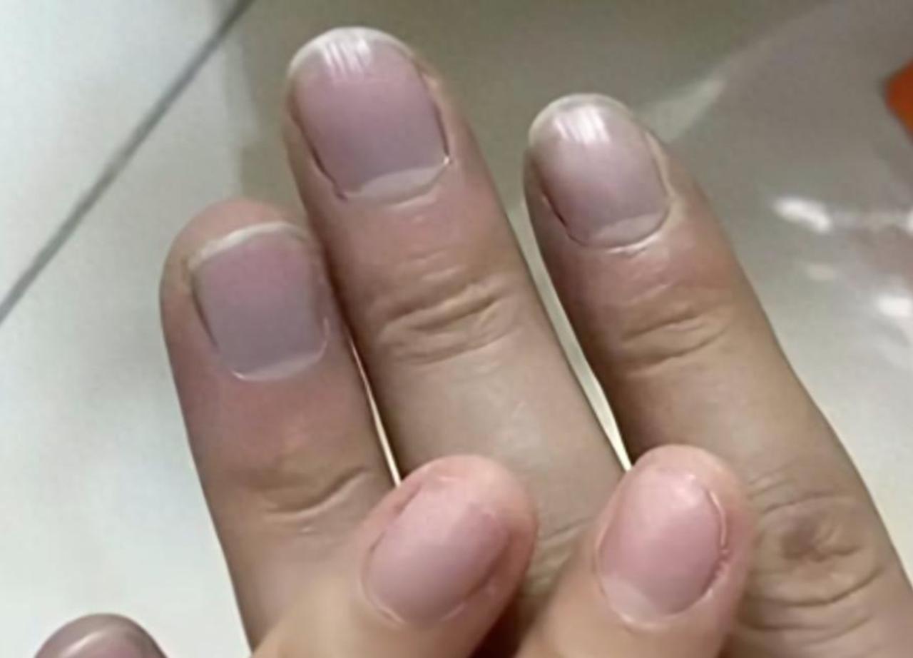 看那仨手指甲都啥色了还是没事儿呢,再看上边那俩手指甲颜色多红润啊。