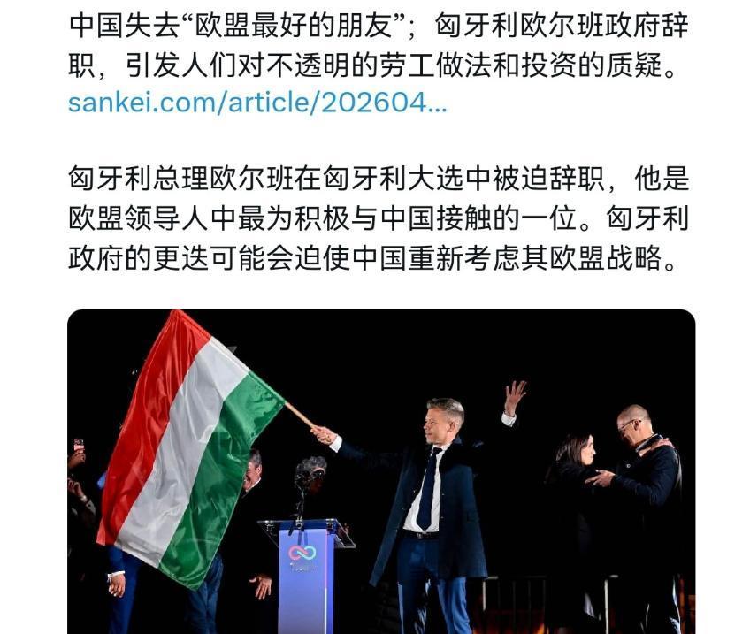 日媒表示,欧尔班的下台,让中国失去了在欧盟内最好的朋友!4 月 13 日,日本产经新闻重磅报道:匈牙利总理欧尔班在 12 日的国会大选中惨败,承认败选,结束长达 16 年的执政生涯。