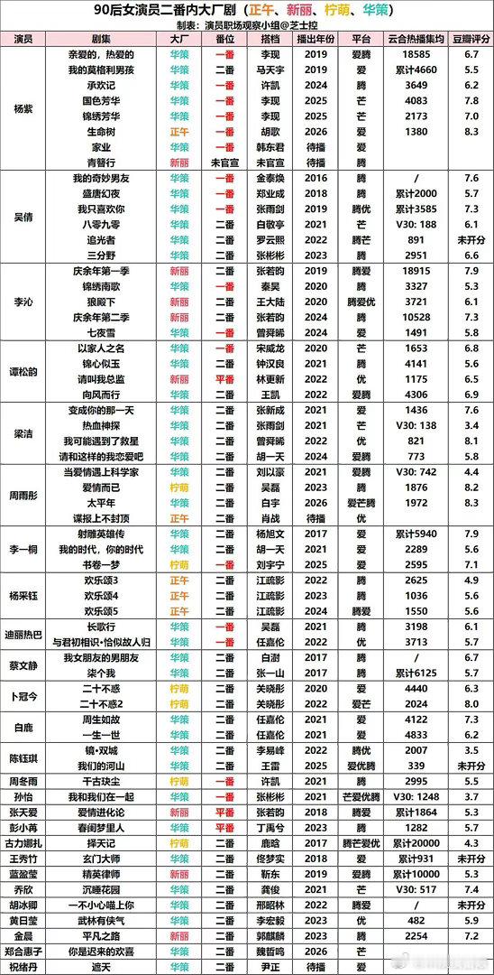 90后演员大厂剧统计