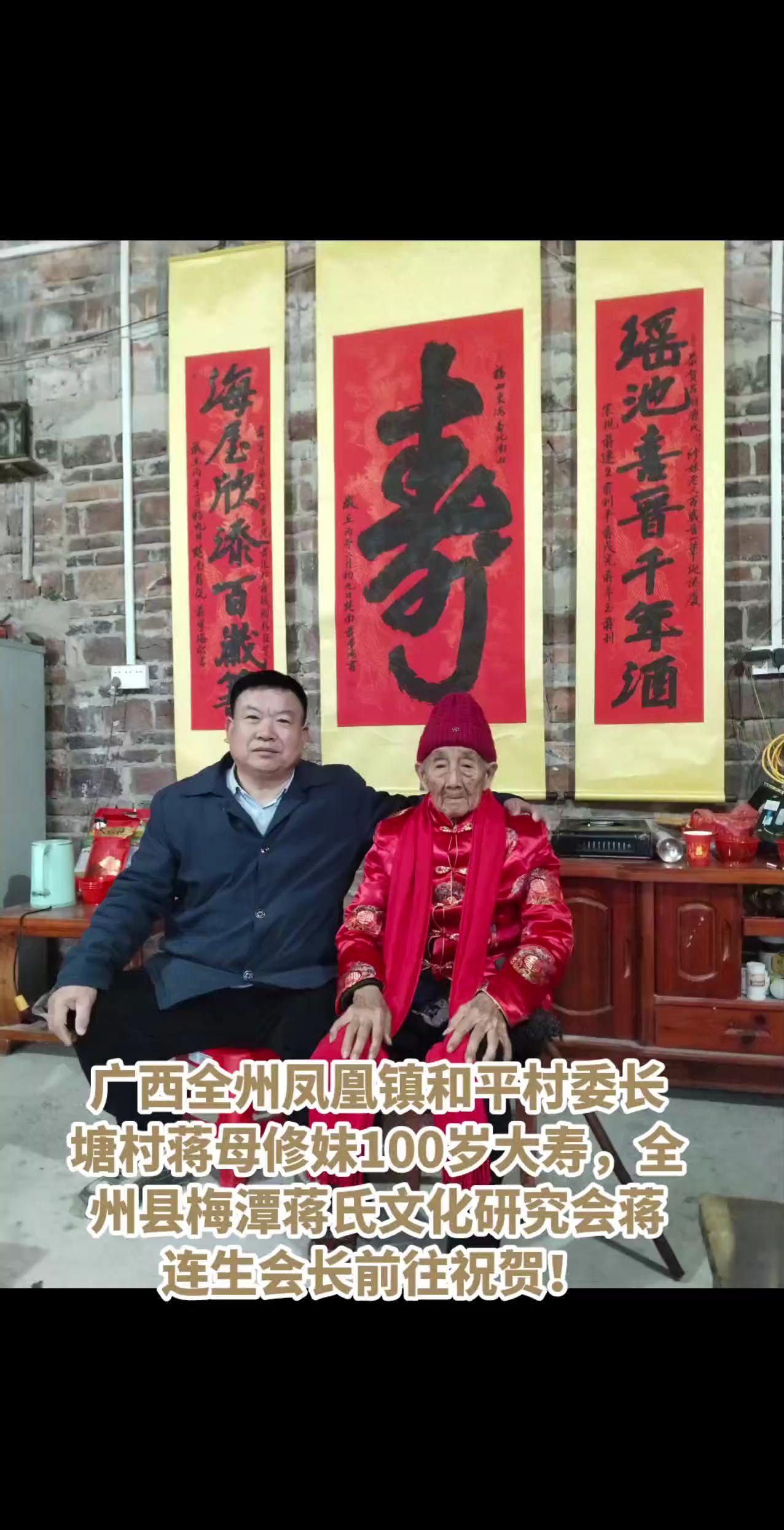 广西全州凤凰镇和平村委长塘村蒋母修妹100岁大寿,全州县梅潭蒋氏文化研究会蒋连生会长前往祝贺!蒋氏