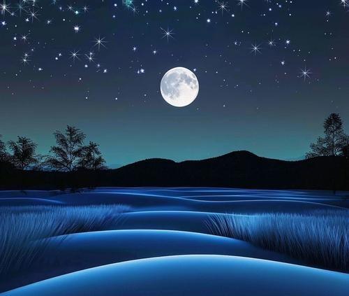 上联写夜晚星月明亮、群山静谧的景象,意境宁静悠远。