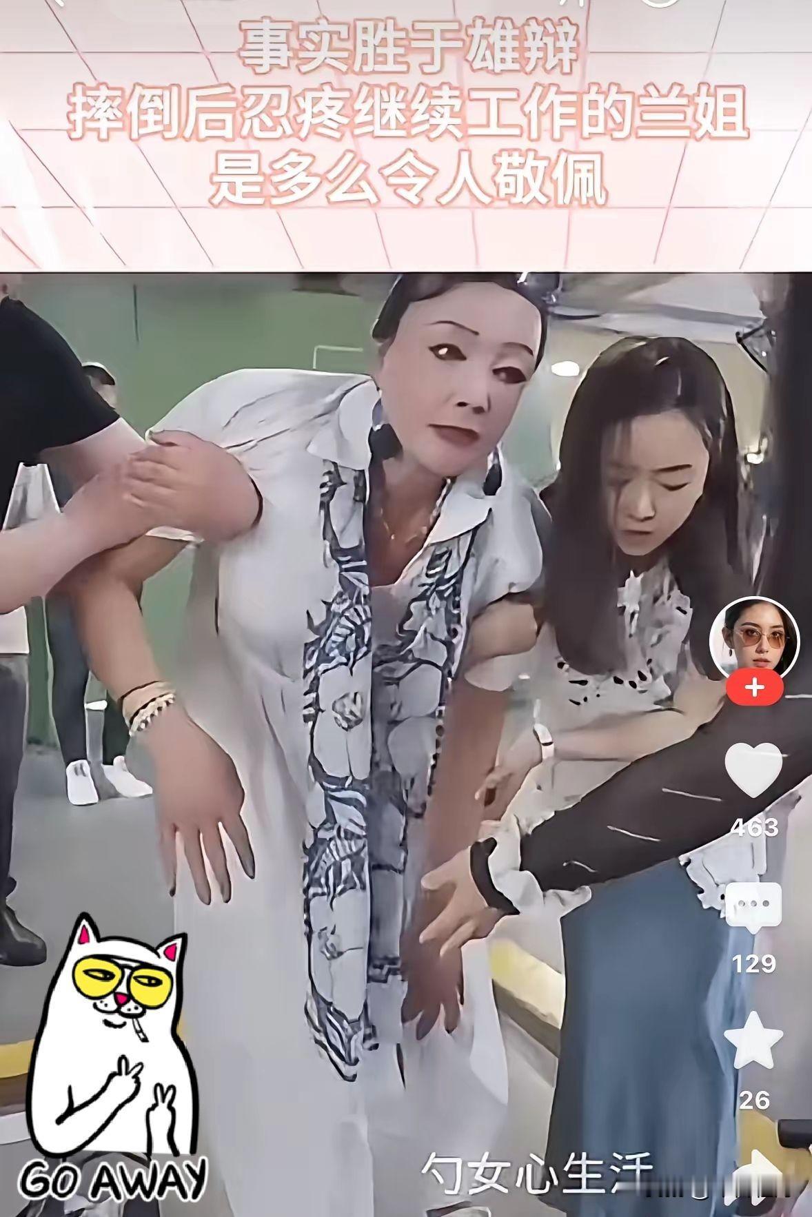 网上有人酸,说她作秀,说她博同情。我真想问问这些人,你让你家六十多岁的老太太摔一个试试?摔完了你对着镜头笑一个试试?站着说话腰不疼。