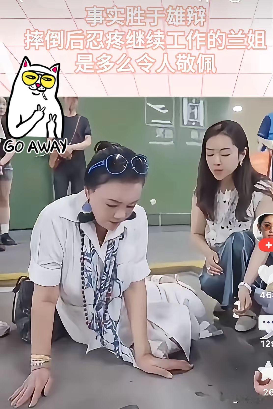 张兰摔倒了,感觉摔的不轻。