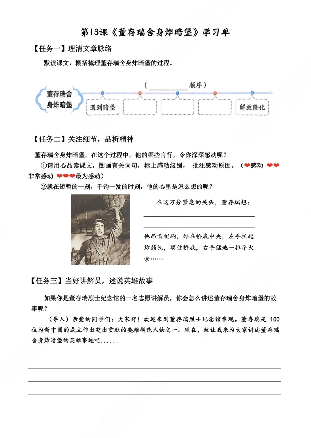 六下|《董存瑞炸暗堡》学习单(思维导图式)